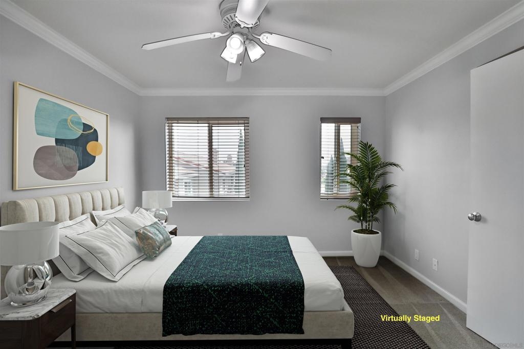 Largest two bedroom floor plan in a premier location at Verano! Located on the the top floor, this unit has two large en-suite bedrooms (both w/walk-in closets!) separated by the living area. Features include side-by-side in-unit laundry, stainless steel appliances, granite counters, travertine showers, breakfast bar, dual pane windows, ceiling fans, fireplace, crown molding throughout, and a private balcony with peaceful greenbelt views and storage closet. Two side-by-side assigned parking spaces + permitted guest parking. Easy access to trolley & bus lines, concerts in the park, shopping, restaurants & more. Freshly painted throughout and move-in ready! Complex features 2 pools, fitness center, sauna, BBQ, a cyber cafe & walking trail. Largest two bedroom floor plan in a premier location at Verano! Located on the the top floor, this unit has two large en-suite bedrooms (both w/walk-in closets!) separated by the living area. Features include side-by-side in-unit laundry, stainless steel appliances, granite counters, travertine showers, breakfast bar, dual pane windows, ceiling fans, fireplace, crown molding throughout, and a private balcony with peaceful greenbelt views and storage closet. Two side-by-side assigned parking spaces + permitted guest parking. Easy access to trolley & bus lines, concerts in the park, shopping, restaurants & more. Freshly painted throughout and move-in ready! Complex features 2 pools, fitness center, sauna, BBQ, a cyber cafe & walking trail. Complex Features: ,,,, Equipment: Dryer,Garage Door Opener, Range/Oven, Washer Sewer: Sewer Connected Topography: LL