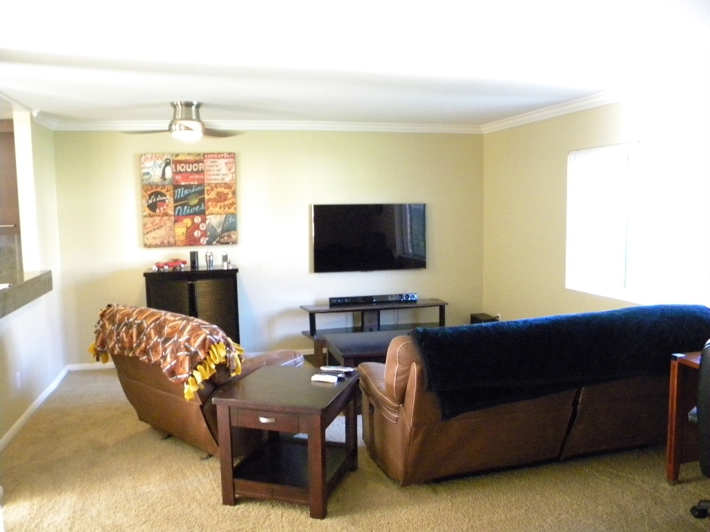 1st floor end unit w no neighbors on one side for added privacy! Condo has been updated w Granite counters, travertine floors, upgraded cabinets, SS fridge-micro-d/w-stove & sink! New upgraded noise reducing windows, California Closet & custom paint! Crown molding throughout w upgraded light fixtures, ceiling fans & upgraded ventilation for bathroom & laundry closet! Bathroom recently underwent complete custom remodel valued at $15k! Optional room used as dining w patio access, may be used for office Neighborhoods: La Jolla Colony Equipment: Range/Oven Other Fees: 0 Sewer: Sewer Connected Topography: LL