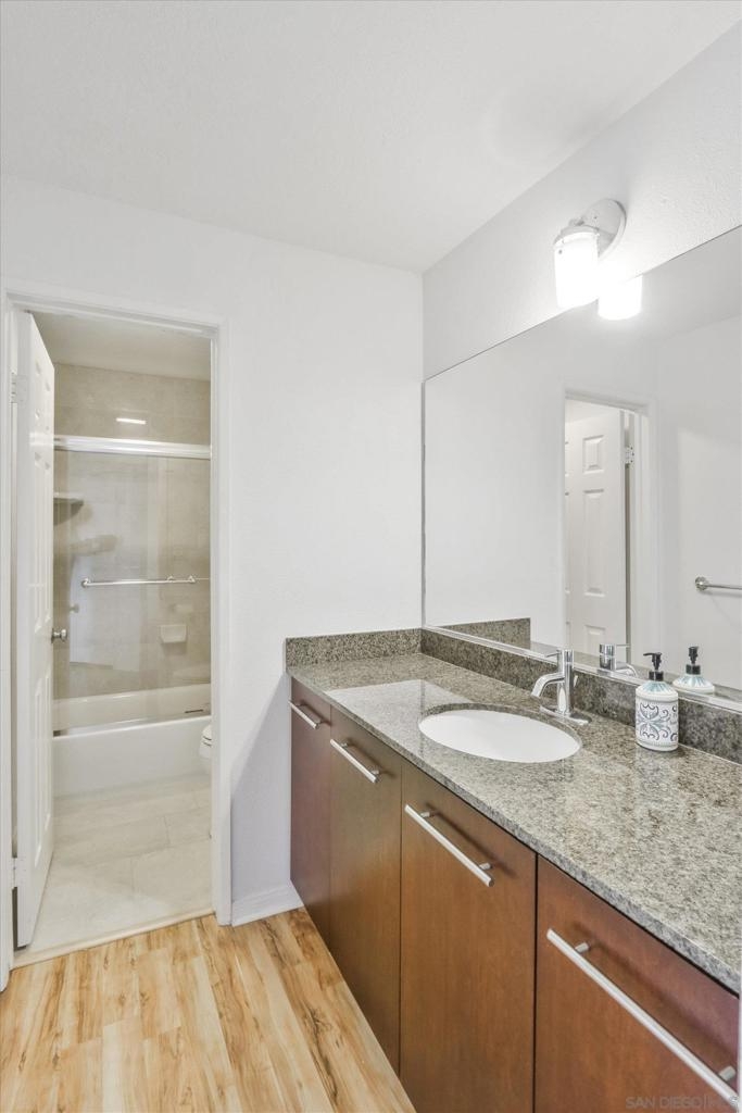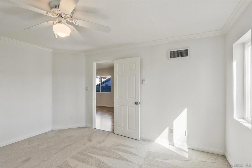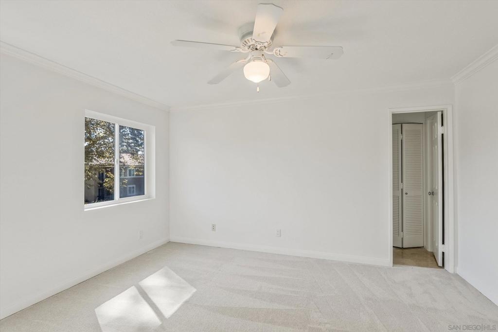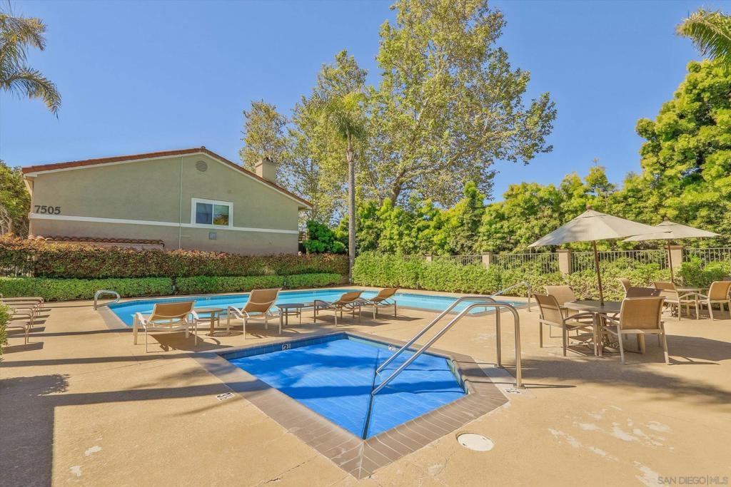 Beautiful upper level corner unit with a private patio and view of greenbelt in the highly sought after Verano complex in La Jolla Colony. The largest 2 bedroom floor plan has a spacious kitchen and dual master suites w/ private bathroom. This bright unit features granite counter top, stainless steel appliances, dual pane windows, laminate floors, new paint and new carpet in both bedrooms, newer refrigerator, newer in house washer/dryer etc.. Conveniently located next to fitness center and club house. Two assigned underground parking spots in gated garage and one additional parking spot with permit. Water and trash included in HOA fees. Minutes walk to bus stops and easy commute to UCSD, and shopping centers. Close to UTC mall, restaurants and more. Amenities in this community including pools, spas, fitness center, walking trail, a cyber cafe, BBQ area etc.