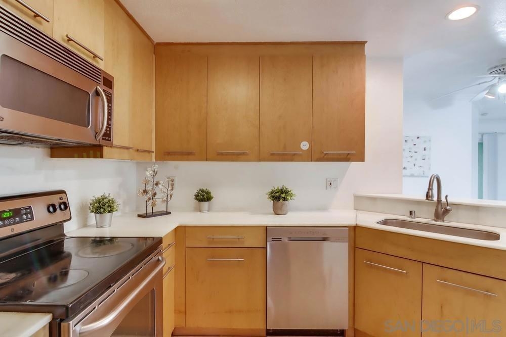 Spacious 2 bedroom 2 bathroom home, very rare end unit in the highly sought after Verano community in UTC. Dual master floor plan with upgraded kitchen, bright and airy living room, walking in closet, full sized laundry in the unit, private balcony off of the living room. Newer floorings and windows. A lots of natural light. Two assigned parking spaces in garage. Complex features 2 pools, spa, sauna, gym and BBQ area. Great location close to all. Equipment: Dryer, Washer Sewer: Public Sewer Topography: LL
