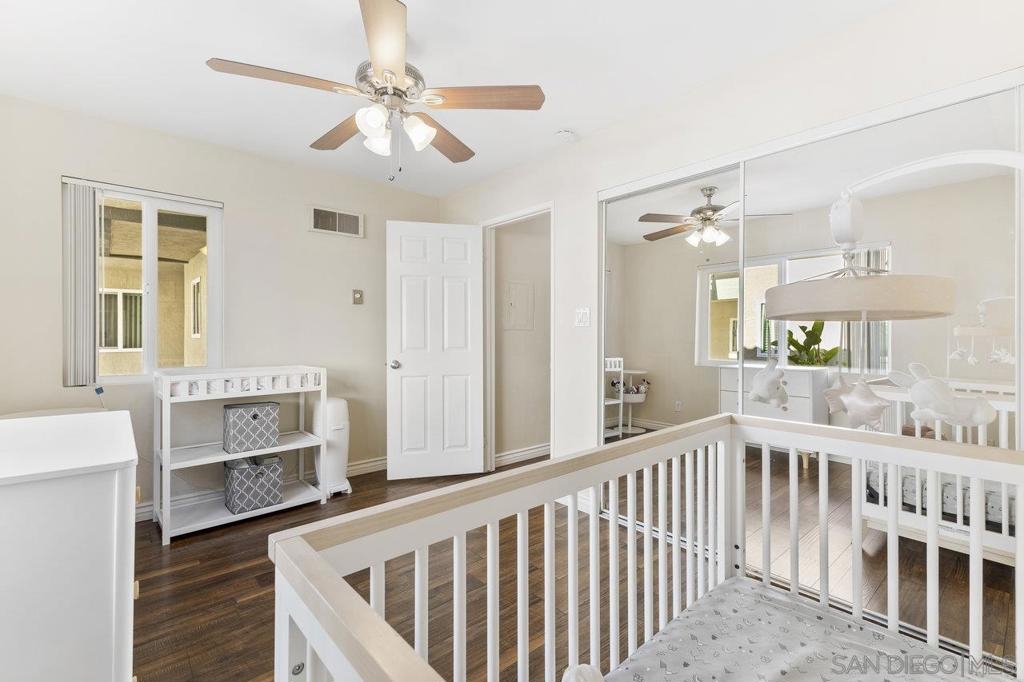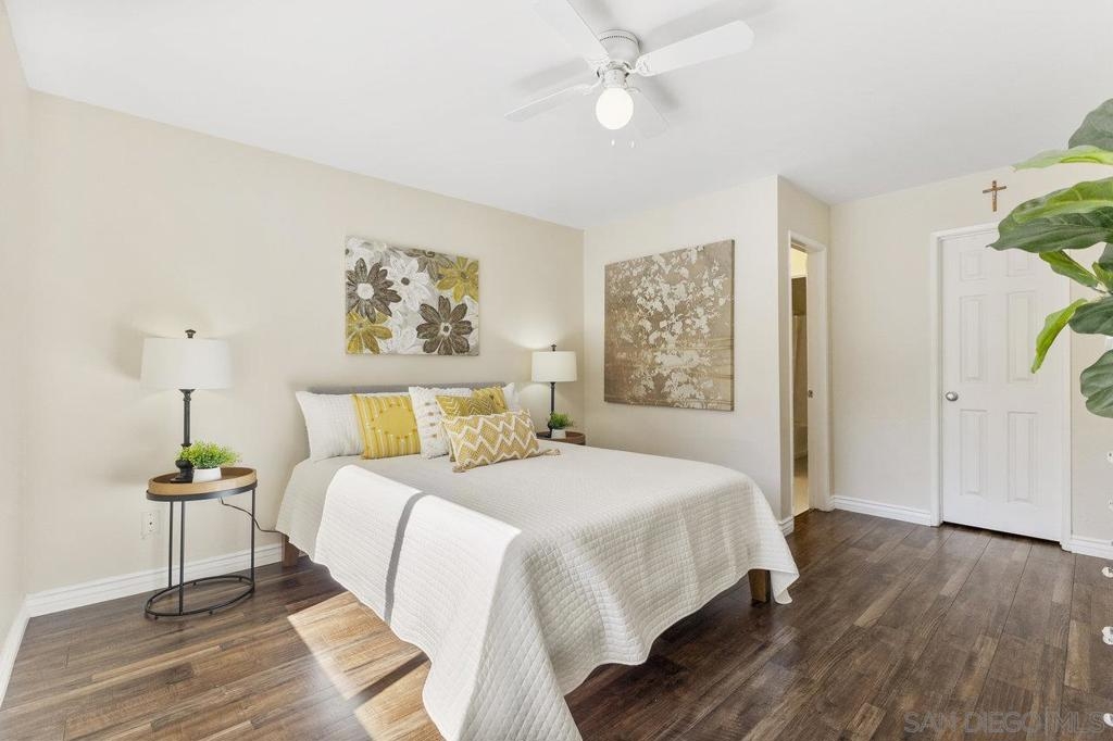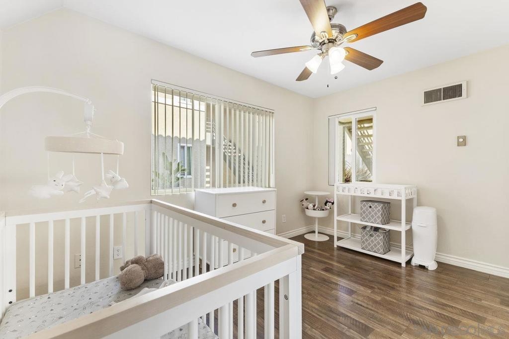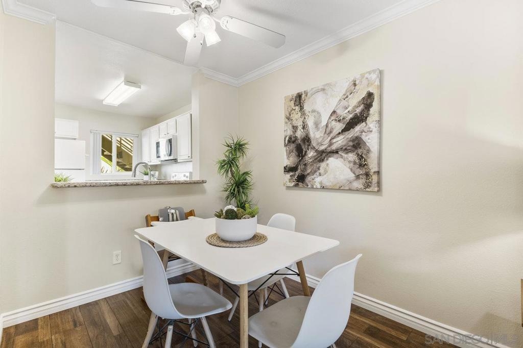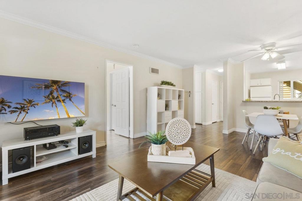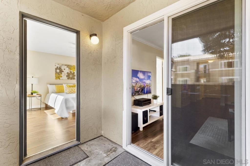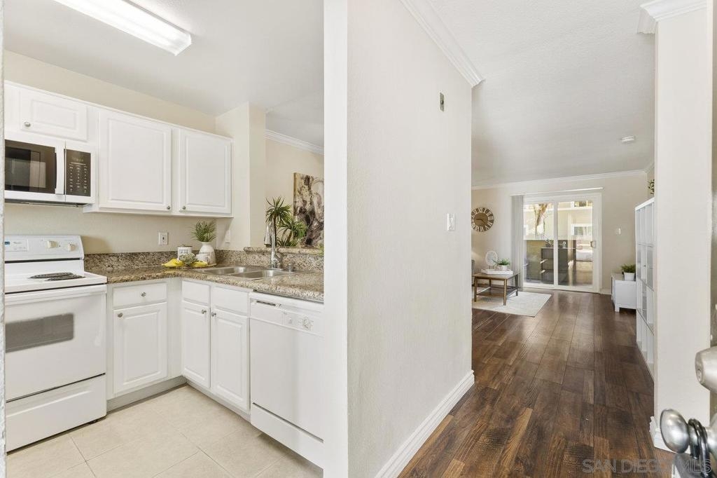 Move-In Ready! Welcome to the best location in sought-after Verano La Jolla Colony community. A quiet and serene retreat combining convenience & comfort. Freshly painted, light filled, open floor plan and stylish wood laminate floors. Three parking permits. Full size in-unit laundry. Amenities + water/trash included in HOA. The unit includes three parking permits (2 garage spaces and 1 guest pass), a full washer and dryer with additional hallway storage, and access to fantastic community amenities such as two pool areas, BBQ stations, a gated parking garage, a cybercafé, and a gym. Explore the nearby walking trails that connect Verano to the broader La Jolla Colony community, with La Jolla Colony Park and the La Jolla Colony Dog Park right next door. Perfectly situated in a central location, this condo offers easy freeway access and is conveniently near the Blue Line trolley stop. Enjoy being less than 2 miles from UCSD, shopping, restaurants, and major freeways. Plus, you're just an 11-minute drive from La Jolla Shores Beach and Pacific Beach, and only 15 minutes from Downtown, Little Italy, and the San Diego Zoo.