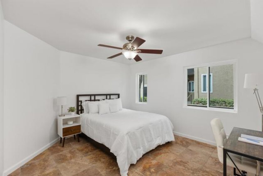 Look no further than this beautifully upgraded UTC two bedroom, two bathroom, dual primary suites condo in the coveted Verano complex in La Jolla Colony. Largest floor plan, this 1,037 square feet entry-level condo has no stairs and easy access from the main entrance walkway. Features freshly painted interior, white cabinetry, granite counter tops, stainless steel appliances, dual-pane windows and patio slider. Both bedrooms are retreats with large walk-in closets and upgraded bathrooms. Includes full size in-unit washer and dryer and ample storage closet on the large patio. Comes with two assigned underground parking spots along with an additional permitted parking space. The Verano complex features resort style amenities, including two pools and hot tubs, cyber café, 24/7 gym, BBQ area, and walking trails in a park-like setting. Close proximity to UTC mall, restaurants, coffee shops, movie theaters, dog park, Whole Foods Market, Ralph’s, Trader Joe's, Von’s, the Trolley and UCSD shuttle bus. Minutes to beaches, Birch Aquarium, Torrey Pines Golf Course, Nobel Athletic Center, airport, and Downtown. Look no further than this beautifully upgraded UTC two bedroom, two bathroom, dual primary suites condo in the coveted Verano complex in La Jolla Colony. Largest floor plan, this 1,037 square feet entry-level condo has no stairs and easy access from the main entrance walkway. Features freshly painted interior, white cabinetry, granite counter tops, stainless steel appliances, dual-pane windows and patio slider. Both bedrooms are retreats with large walk-in closets and upgraded bathrooms. Includes full size in-unit washer and dryer and ample storage closet on the large patio. Comes with two assigned underground parking spots along with an additional permitted parking space. The Verano complex features resort style amenities, including two pools and hot tubs, cyber café, 24/7 gym, BBQ area, and walking trails in a park-like setting. Close proximity to UTC mall, restaurants, coffee shops, movie theaters, dog park, Whole Foods Market, Ralph’s, Trader Joe's, Von’s, the Trolley and UCSD shuttle bus. Minutes to beaches, Birch Aquarium, Torrey Pines Golf Course, Nobel Athletic Center, airport, and Downtown.