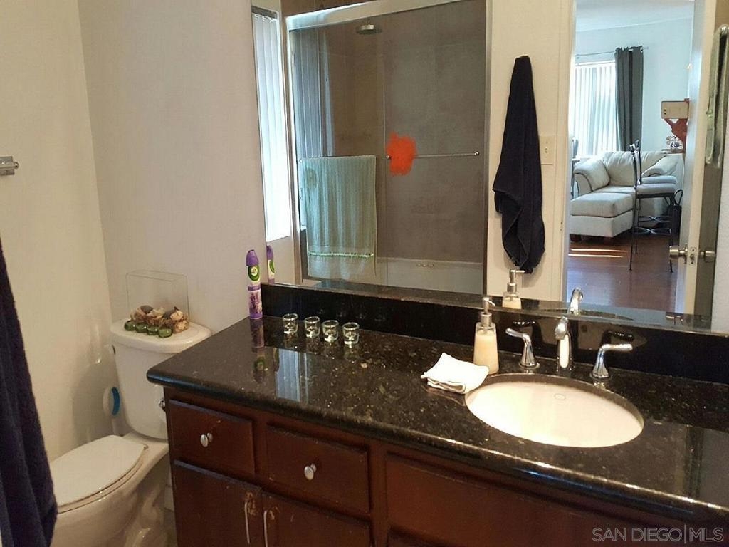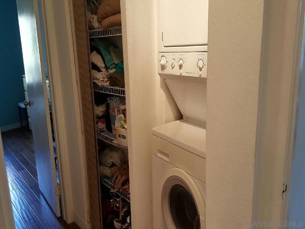 Delightful 2nd story 1 level model with gorgeous wood laminate floors, rich granite counters, recessed lights, light airy southerly exposure, hear the birds sing on westerly facing balcony with storage closet, uplifting remodeled bath, private interior laundry, spacious walk-in closet and superb Golden Triangle location near Whole Foods ,Trader Joes, AMC Theaters, UCSD, bus lines, shopping, VA/Scripps hospitals and world renowned La Jolla beaches! Equipment: Range/Oven Sewer: Sewer Connected Topography: LL