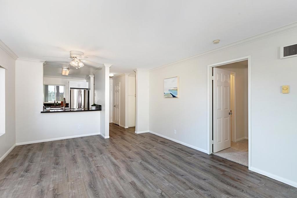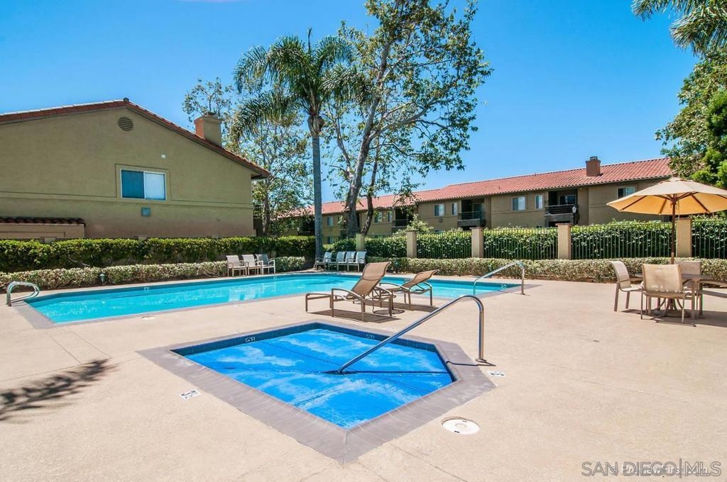 Light and bright top floor, end unit at Verano in La Jolla Colony/UTC. Private SW location w/ balcony overlooking the lush courtyard below. New kitchen & appliances! New paint, carpet & vinyl plank flooring. Fireplace, full-size W/D & dual paned windows. Secured parking garage nearby. Entry overlooks pool/spa. Ideal location near bus lines, shopping/dining, La Jolla beaches, UCSD, top medical centers, mid-coast trolley stop & freeways. Enjoy pool/spa, gym, sauna, walking paths & one minute to the park! Unit also features master suite with walk-in closet, new faucets at kitchen/bath, coat closet/pantry, storage closet on spacious balcony. Parking garage has bike storage and there are saunas/restrooms at the fitness center. Pet friendly walking paths at the center of the complex lead to La Jolla Colony Park with large grassy areas, benches and beautiful shade trees. This unit is located right across from the SW park entrance! Bus stop and shopping center is across the street from Verano. It's a great place to live in central/coastal San Diego! Complex Features: ,,,,, Equipment: Dryer, Washer Sewer: Sewer Connected Topography: GSL