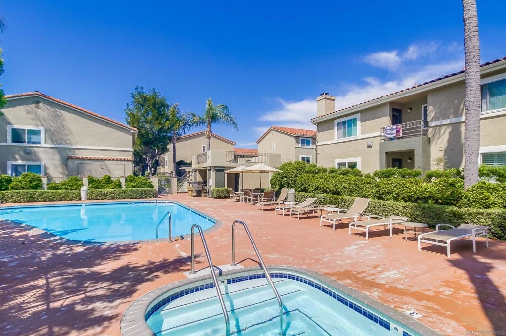La Jolla / UTC Condo – Poolside Living! This bright, sunny, and airy 1BR/1BA ground-floor condo (704 SqFt) feels like your own private retreat. Step right outside to the pool, hot tub, BBQ, sink, and shower — perfect for relaxing or entertaining. Enjoy an open floor plan with a cute balcony and plenty of sunshine, bedroom facing quiet inner yard, walk-in closet, washer/dryer in-unit. One assigned garage space plus one outdoor space, and community amenities including two pools, hot tubs, gym, office space and BBQ areas. Walk everywhere: UCSD shuttle across the street while Whole Foods, Trader Joe’s, Vons, Ralphs, AMC Theatres, Trolley and La Jolla Colony Park are all just minutes away. Delivered furnished or unfurnished. High-growth corridor // strong rental demand.