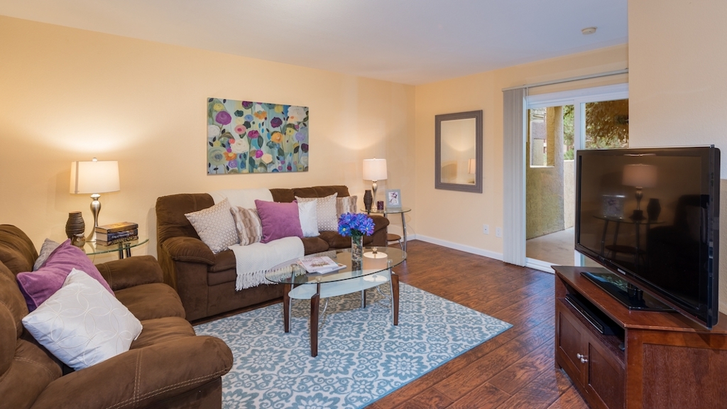 Stunning, sought-after, the largest Verano floor plan, dual master suites with walk-in closets. Wood flooring, European style cabinets & granite slab counters in both bathrooms & kitchen, stainless appliances. Newer Dual pane windows & sliding door. Extra BIG patio overlooking greenbelt. Parking: 2 assigned spaces in gated garage & 1 pass for upstairs. Perfectly located, walk to park, UCSD shuttle, dining, grocery, shopping. Close by movies, shopping mall, beach. Complex has fitness, pool, internet cafe. Neighborhoods: La Jolla Colony Other Fees: 0 Sewer: Sewer Available Topography: LL