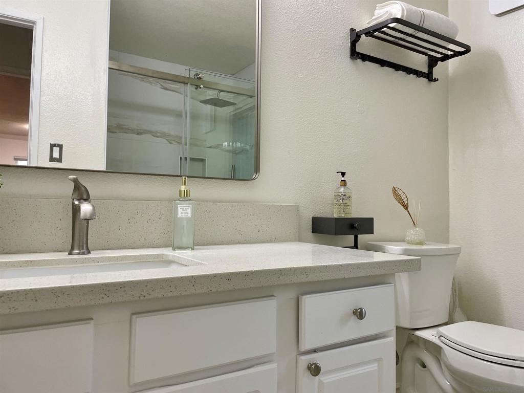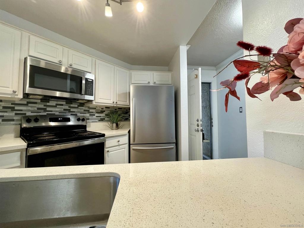 Absolutely adorable! One of the best unit within the complex. Located in the golden triangle of UTC, this first floor corner unit offers soothing central greenery view, very quiet, natural light throughout, double pane windows, beautifully updated shower bathroom, flooring and kitchen. In unit stackable laundry. Walk-in closet. It has one of the largest private balconies of the community. Verano complex is near the bus stops that ride to UCSD, close to UTC fashion mall and the Blue line trolley transit center as well as freeways. The community offers a Pool, jacuzzi, and fitness center.
