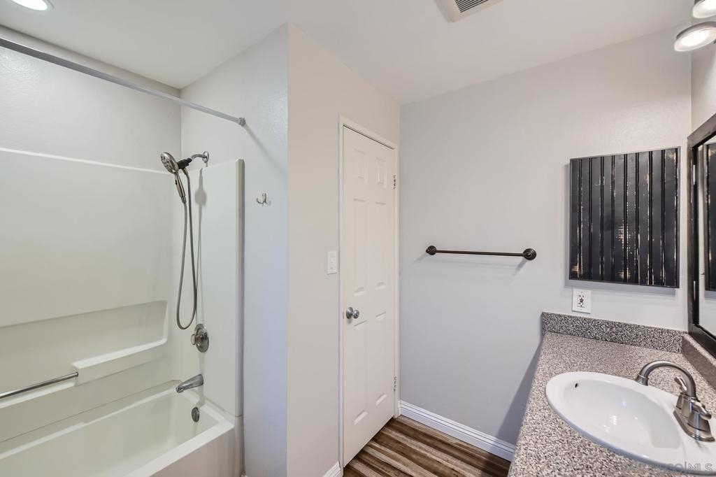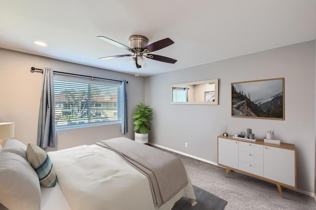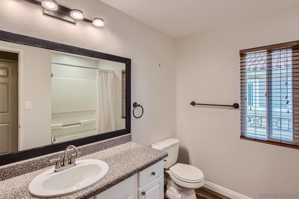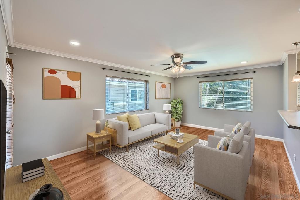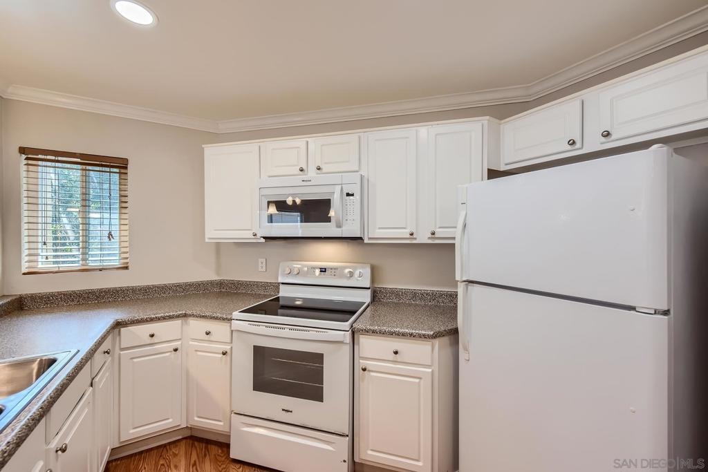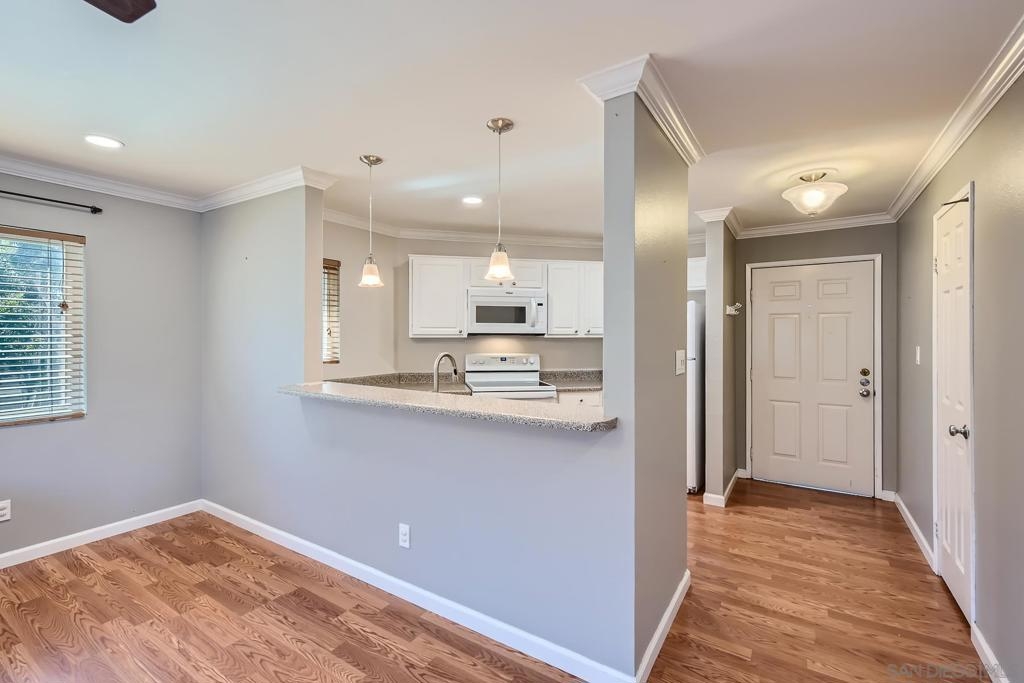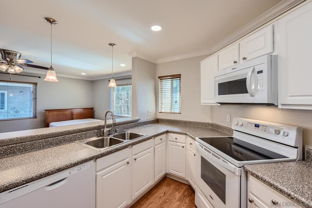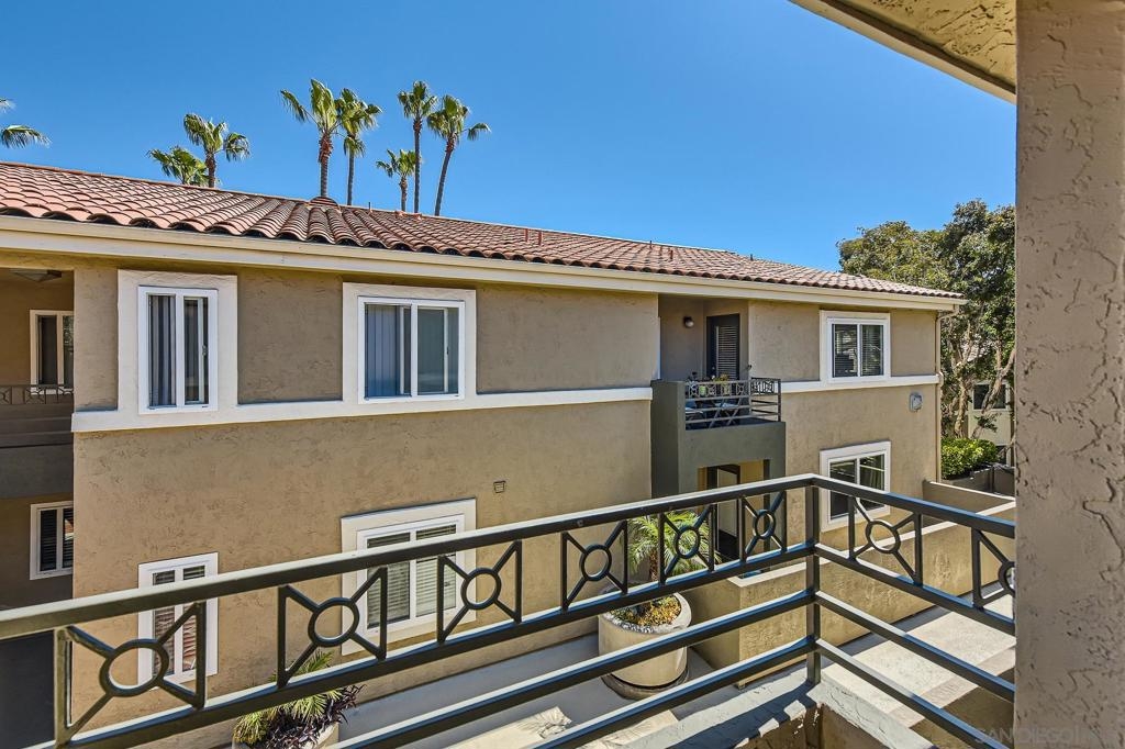 Beautifully appointed upper end unit boasting 3 walls of windows providing a light airy feel and featuring rich laminate flooring, newer washer, dryer, stove, dishwasher and refrigerator, outdoor pleasant breezy terrace with storage closest, tasteful decor and well coordinated colors, stylish crown molding, HOA heated swimming pool with barbecue area, totally remodeled HOA Fitness Center with all new equipment and beautiful common park area with fit trails and passive green space and gardens. Plus, on site mail delivery, unbeatable Golden Triangle location near Whole Foods, Trader Joes, AMC Theaters, UCSD, bus lines, shopping, VA/Scripps hospitals and world renowned La Jolla beaches!