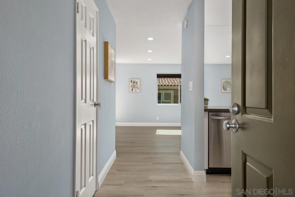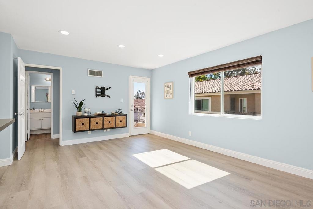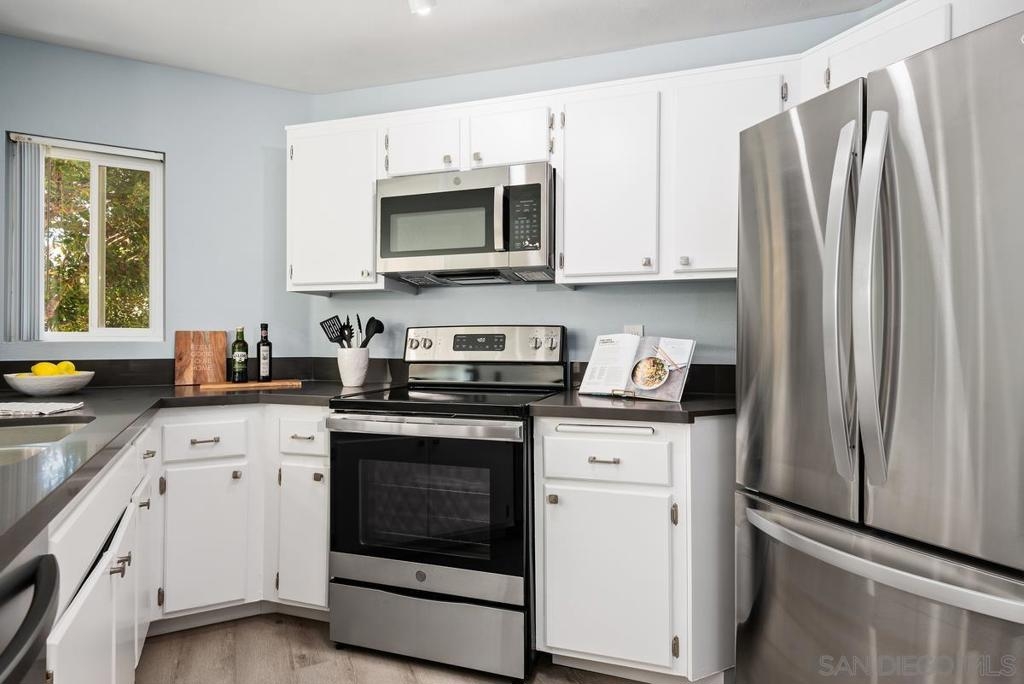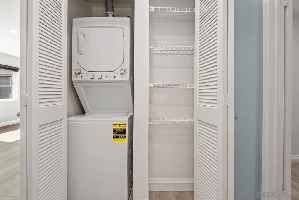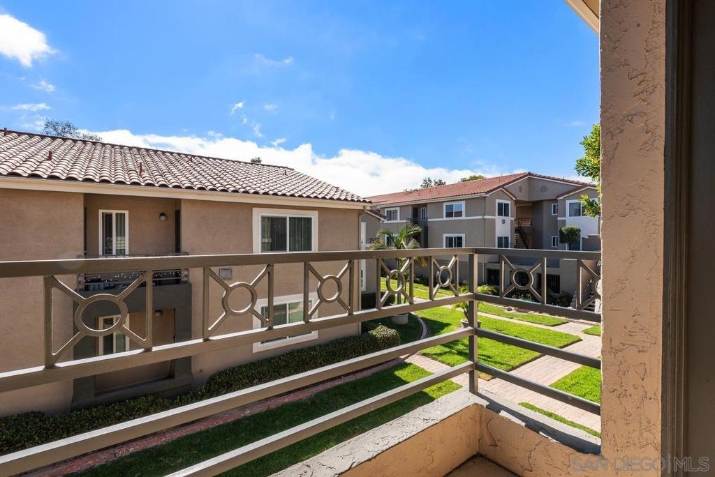 Light and bright top floor, end unit at Verano in La Jolla Colony/UTC. Prime location with peak view of Mt. Soledad from the balcony, overlooking the lush courtyard below. Kitchen has new quartz counters & stainless appliances. New paint & vinyl plank flooring. Window A/C, stacked W/D & secured parking garage across the walkway. Ideal location near bus lines, shopping, dining, La Jolla beaches, UCSD, top medical centers, mid-coast trolley station and freeways. Enjoy the pool/spa, gym, walking paths & park. Unit also features LED/recessed lighting, newer dual pane vinyl windows, new faucets at kitchen/bath, custom window blinds in living room, parking garage has bike storage and there are showers/restrooms at the fitness center. Pet friendly walking paths at the center of the complex lead to La Jolla Colony Park, with large grassy areas, benches and beautiful shade trees. Bus stop and shopping center is across the street from Verano. It's a great place to live in central/coastal San Diego! Complex Features: ,,, Equipment: Dryer, Washer Sewer: Sewer Connected Topography: LL