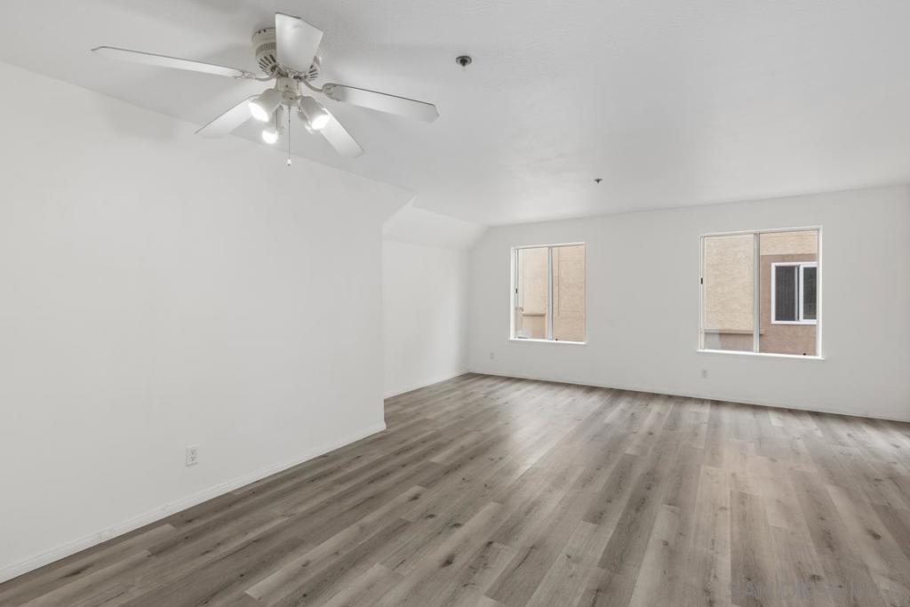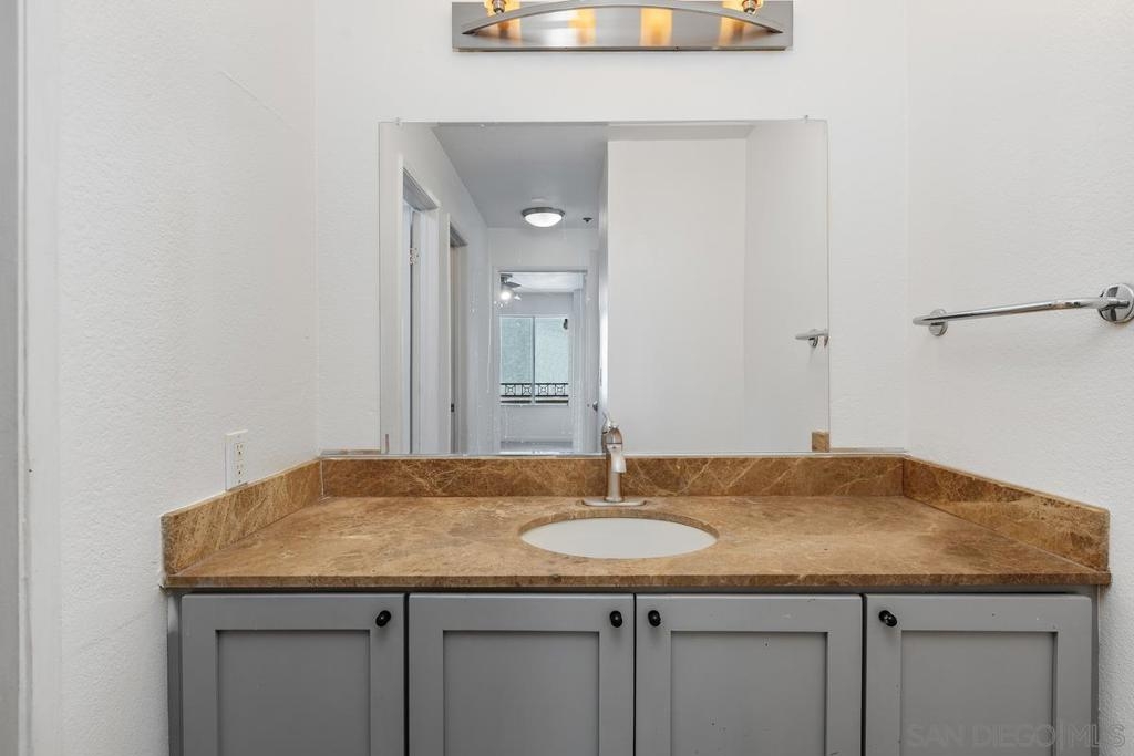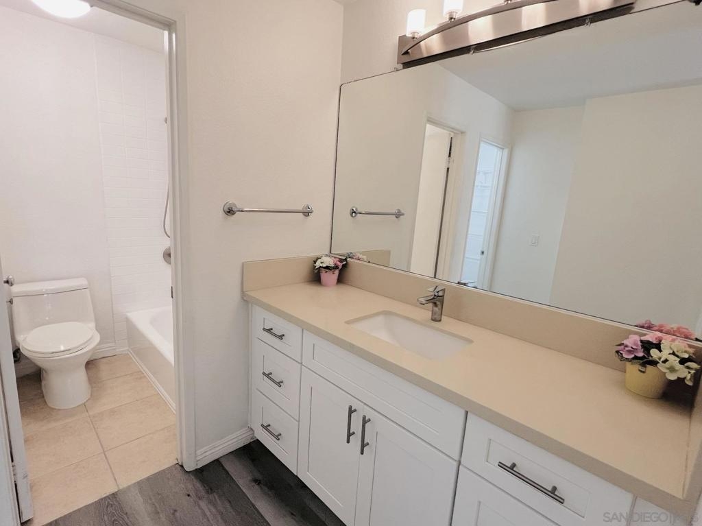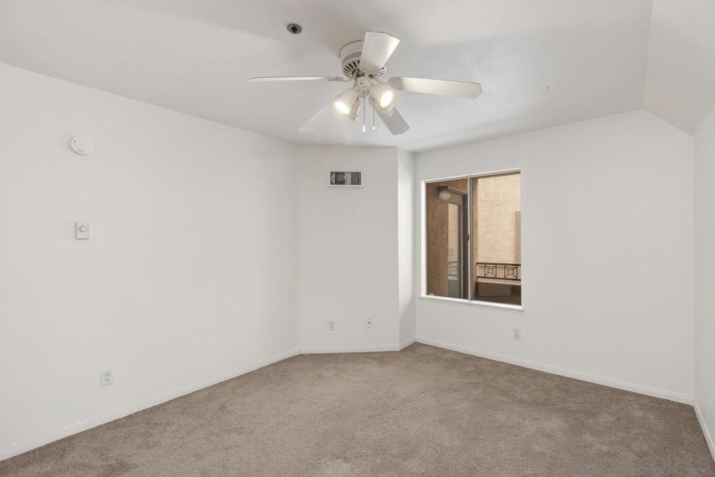 Quiet and south facing second floor unit, 2 bedrooms and 2 baths with views of the courtyard in Villa Vicenza (gated). New paint throughout, new microwave and newly refinished bath tubs. Newer laminate floor in living room and newer carpet in bedrooms. Located in the center of UTC, close to bus stops, UCSD, UTC mall, restaurants, shopping, grocery stores and the new trolly etc. Two gated underground parking spots. Resort level amenities including heated pool, spas, showers and full gym.
