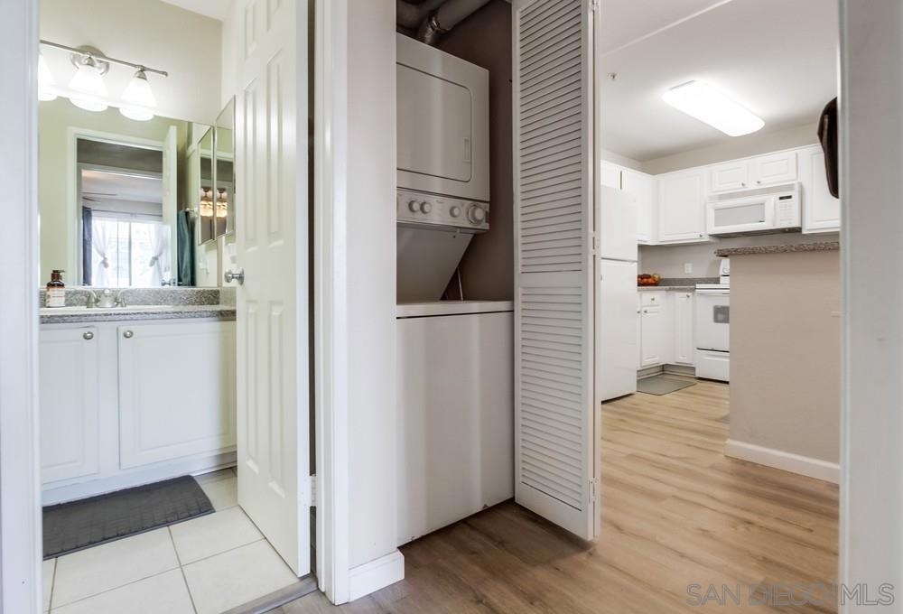 Welcome to this modern UTC condo located in the desirable Villa Vicenza community! This centrally located and turnkey 1-bedroom, 1-bath features 535 sq ft of efficient living space with stylish vinyl flooring, crown molding, ceiling fans, and a brand-new refrigerator purchased in 2024. Positioned on the 3rd floor, this north facing condo offers peace and privacy, tucked away from Nobel Drive. Enjoy the ease of a private in-unit washer and dryer, spacious walk-in closet, and assigned underground parking. Recent HOA improvements include a new roof and updated plumbing, enhancing long-term value and peace of mind. Resort-style community amenities include a pool, spa, fitness center, internet café, and polished landscaping throughout. Enjoy the ease of a private in-unit washer and dryer, spacious walk-in closet, and assigned underground parking. Recent HOA improvements include a new roof and updated plumbing, enhancing long-term value and peace of mind. Resort-style community amenities include a pool, spa, fitness center, internet café, and polished landscaping throughout. With quick access to the trolley station, UCSD, UTC Mall, and major freeways, this location offers unbeatable convenience. Perfect for professionals, students, or investors, this well-maintained, low-HOA property is a rare opportunity in one of San Diego’s most connected neighborhoods.
