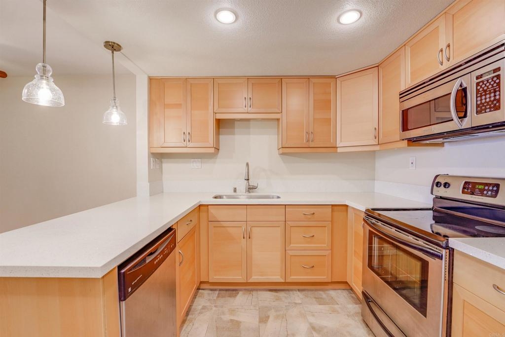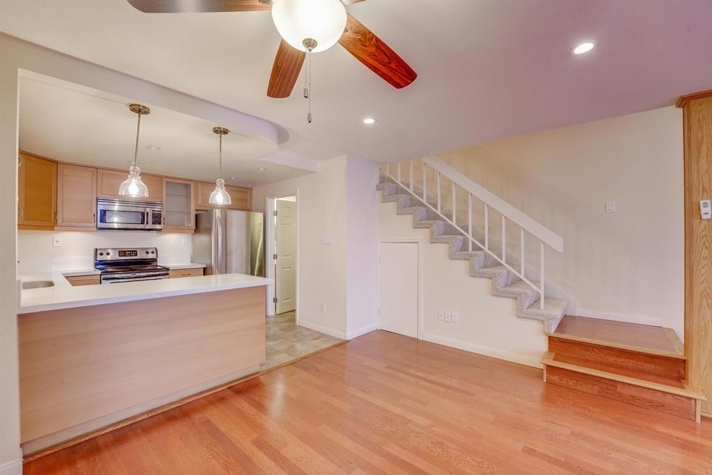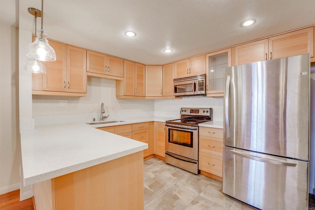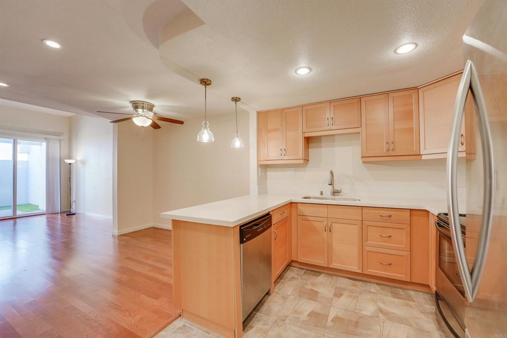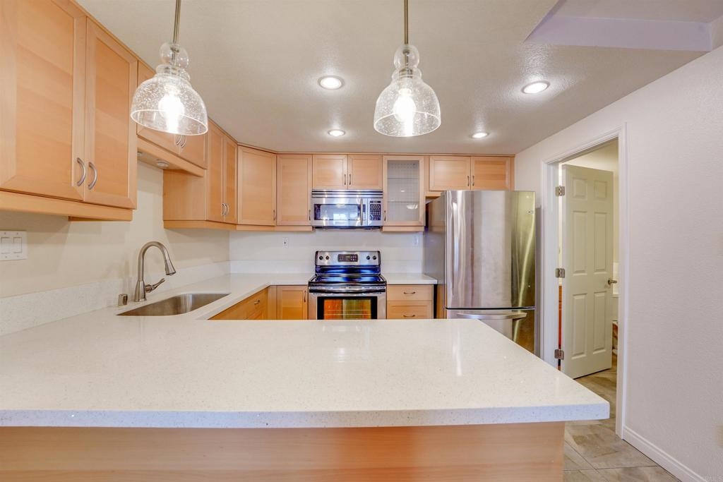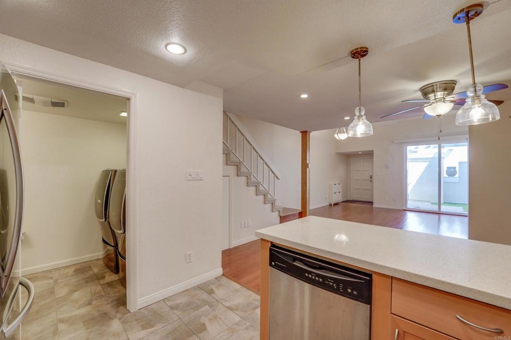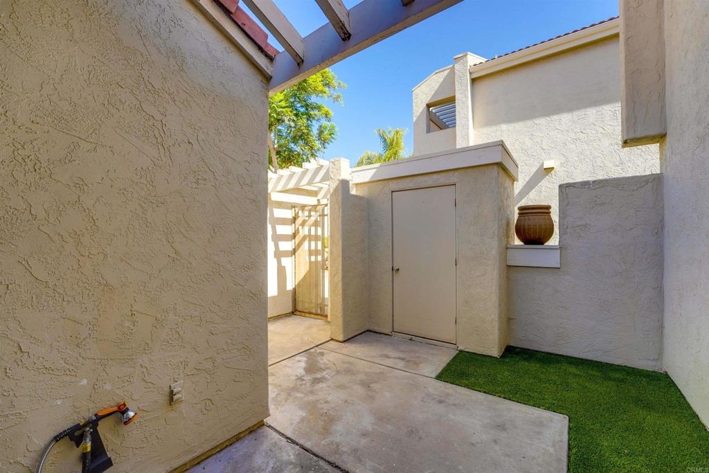This turn-key, highly upgraded townhome with vaulted ceilings has everything and feels like home from the moment you enter the private, gated entrance with large enclosed patio. Improvements include stainless steel appliances and quartz counters in the kitchen, fully remodeled primary bath, as well as full size, Premium LG washer and dryer inside the home. Retreat to your 2nd floor bedroom with custom walk in closet and high ceilings and sleep in peace with no one above or below you. The desirable community is central and conveniently located near conveniences, UTC, UCSD and the trolley. Easy access to both the 52 and 5 fwys makes it easy to get anywhere you need to go quickly. In just a few minutes, you’ll also find yourself downtown La Jolla or in Pacific Beach. VA approved.