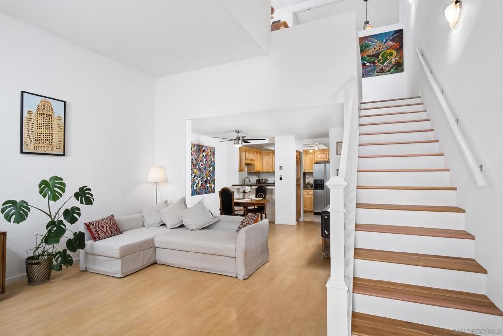 Welcome to this very desirable, ready to move in, 914 sq ft unit in The Villas at University Park located in University City. This open concept townhome has vaulted ceilings both upstairs and downstairs giving the unit an extremely spacious feel. The kitchen has beautiful maple cabinets, granite countertops, stainless steel appliances, and a newly upgraded stove (Samsung). Right next to the kitchen is a laundry room. The stairs and upstairs bedroom have recently installed luxury vinyl flooring. The upstairs bedroom in addition to having a vaulted ceiling, has a good sized walk-in closet. The first level private gated patio comes with a large storage unit. There is a 1 car garage. You will have a Community Pool, gym, and clubhouse to utilize. As an added bonus, you will be in close proximity to the famous beaches in La Jolla, Standley Park, the Univercity City Library, UCSD, and shopping with easy freeway access.