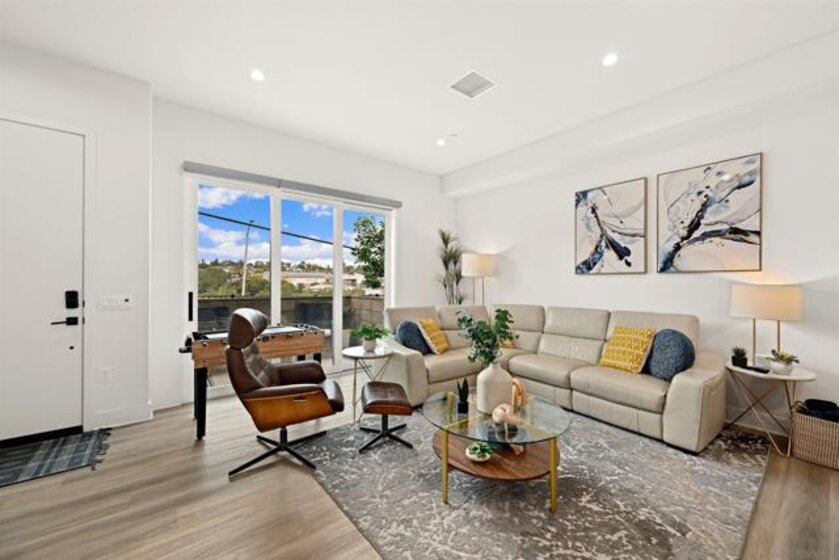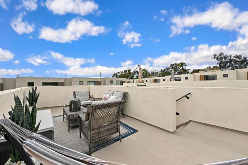 Highly acclaimed Craft by CityMark a luxurious two-story townhome ideally located in a quieter pocket just moments from the energy of Downtown San Diego. Bike to downtown and Padres games, or enjoy the vibrant dining and culture of Golden Hill and South Park—you're near all the action while still enjoying a peaceful residential setting. This move-in ready home showcases voluminous ceilings throughout, including an impressive 12-foot ceiling in the main living area, along with laminate wood flooring and luxury finishes. The thoughtfully designed layout features all bedrooms on the second floor, including a large primary suite, and an in-unit laundry area conveniently located on the same level. Enjoy seamless living with direct access from the two-car garage to the main living area, plus two private outdoor spaces. The highlight is the expansive rooftop view deck with stunning city, bay, and sunset views—perfect for entertaining or relaxing at golden hour. As an added bonus this home can come fully furnished! Situated across from the 32nd Street Canyon trailhead and just half a mile from Downtown, this exceptional townhome offers the perfect blend of urban convenience and neighborhood charm. VA buyers are welcome.