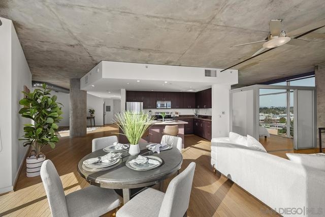 Welcome to the prime locale in Smart Corner, “The Point” floorplan, where walls of glass showcase panoramic views spanning Point Loma, the Pacific Ocean, San Diego Bay, and the Coronado Bridge from this premier south-facing residence. This spacious 1-bedroom open-concept layout is a blank slate for your vision, readily accommodating a 2nd bedroom or private den—a simple customization of adding drywall and a door unlocks the full potential of this exceptional urban home. You’ll love the modern style with loft-inspired character, complete with original bamboo flooring, exposed concrete accents, all opening to a huge balcony, a true standout feature ideal for entertaining, dining al fresco, or simply relaxing while soaking in the sweeping skyline and coastal vistas. The kitchen features stainless appliances, recessed lighting, and an eat-at bar for casual dining. Additional highlights include an upgraded washer and dryer, two excellent, separate parking spaces (rare P1 and a P3). Whether you’re seeking a stylish city residence, a smart investment, or a flexible live/workspace, this home offers unmatched views with a central Downtown location! VA approved. Smart Corner is an all-encompassing hub of work, play, shop, and live! It is conveniently located near the 163 freeway, I-5, Highway 94, Petco Park, the Gaslamp Quarter, San Diego City College, and Balboa Park. A trolley station located below the development ensures Smart Corner has all an urban dweller could want. Amenities include 20th floor roof-top sun deck with forever views of the city skyline, 10-person hot tub, barbecue area, wet bar, 2nd floor Fitness Center, PLUS on-site management, and security.