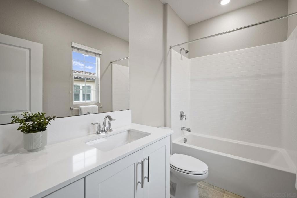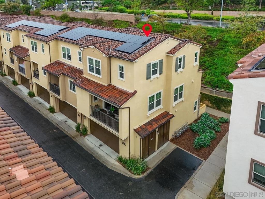 Beautiful 2021-Built End Unit Townhome in the Sought-After Promenade at Pacific Village – No Mello Roos! Welcome to this stunning three-level corner home where modern design meets effortless everyday living. Bathed in natural light from extra windows, this end unit townhome has 200 sq ft more living space than interior units. Featuring 9-foot ceilings and an open-concept living space, the heart of the home is perfect for gathering, relaxing, and entertaining. The modern kitchen boasts quartz countertops, a large island, pantry closet, and generous counter space — blending functionality with style. Step outside to enjoy your morning coffee on the charming front patio or unwind on your balcony on the second level, both ideal for fresh air and our Southern California sunshine. Smart and sustainable living are built right in, with a Solar Power Purchase Agreement (PPA) to help keep energy costs low and a whole-home water softener system for enhanced comfort and efficiency. Thoughtful details include a bedroom and full bathroom on the entry level, ideal for guests or a home office, and a dedicated laundry room for added convenience. Upstairs on the third level, the primary suite offers a peaceful retreat with a walk-in closet and a beautifully finished bathroom. The Promenade at Pacific Village offers resort-style amenities — a sparkling pool, playground, BBQ and picnic areas, and several dog parks. With no Mello Roos, easy access to fwys, shopping, dining, and top-rated Poway Unified schools, this home delivers! Come and see for yourself!