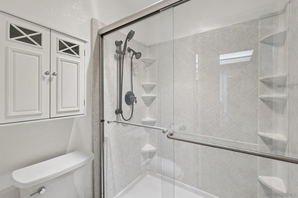 Located in the highly desirable community of Tierrasanta in San Diego, this beautifully updated & FIRST FLOOR 2-bedroom, 2-bathroom condo offers 1,118 sq ft of light-filled living space in a quiet, park-like setting. This corner unit overlooking a fountain and lush landscaping provides exceptional privacy and tranquility rarely found in condo living. Inside, you’ll find an updated kitchen with wine refrigerator and full-size refrigerator, fresh neutral paint, and modern easy-care flooring throughout. The spacious living room features a gas fireplace, creating a warm and inviting atmosphere. The functional layout includes an optional in-unit laundry space, a water filtration system, and generous storage—including additional patio storage. Includes one assigned parking space in a secure underground community garage, plus ample off-street guest parking. The HOA amenities enhance lifestyle convenience with community amenities including heated pool, spa, sauna, BBQ and picnic areas, and pickleball courts amidst beautifully maintained grounds. El Dorado Greens is primarily a smoke-free community. Short drive to admiral Baker Golf course. Will sell fast!