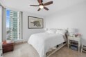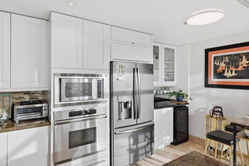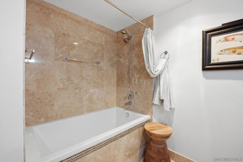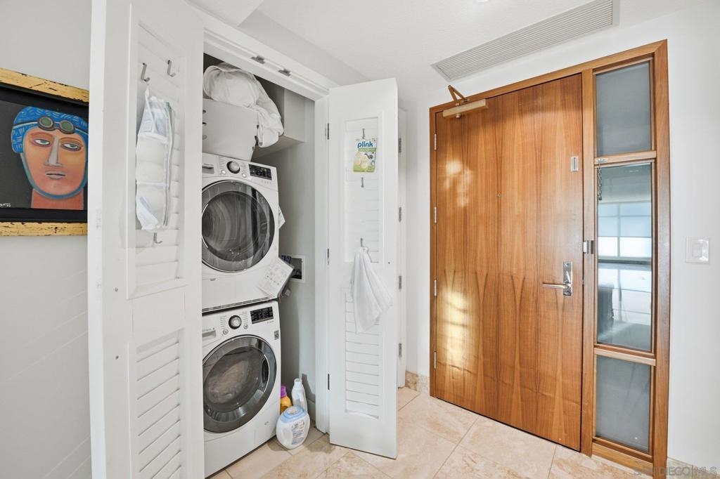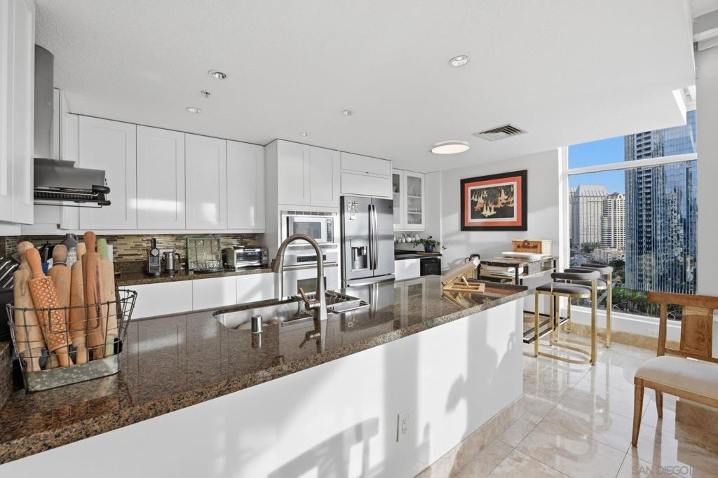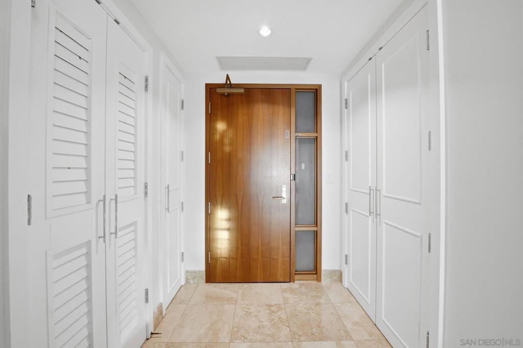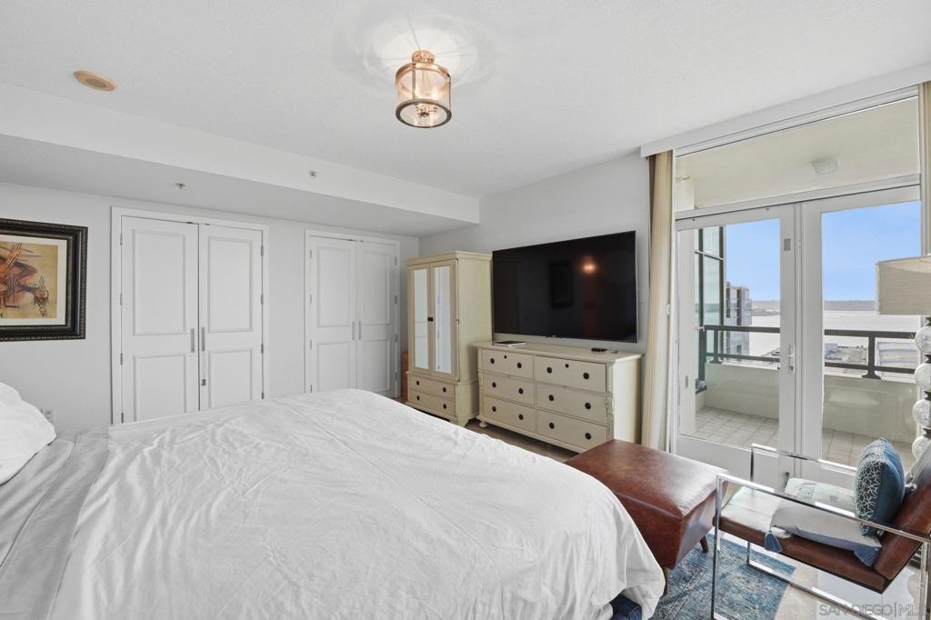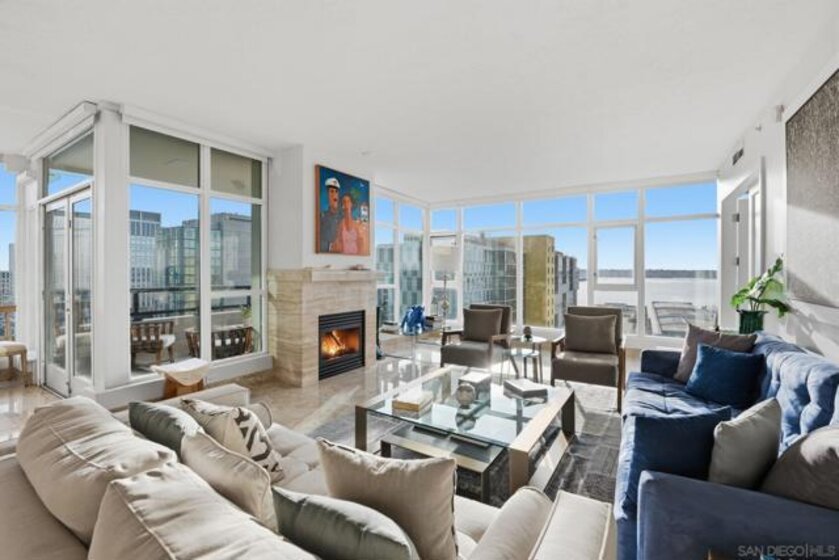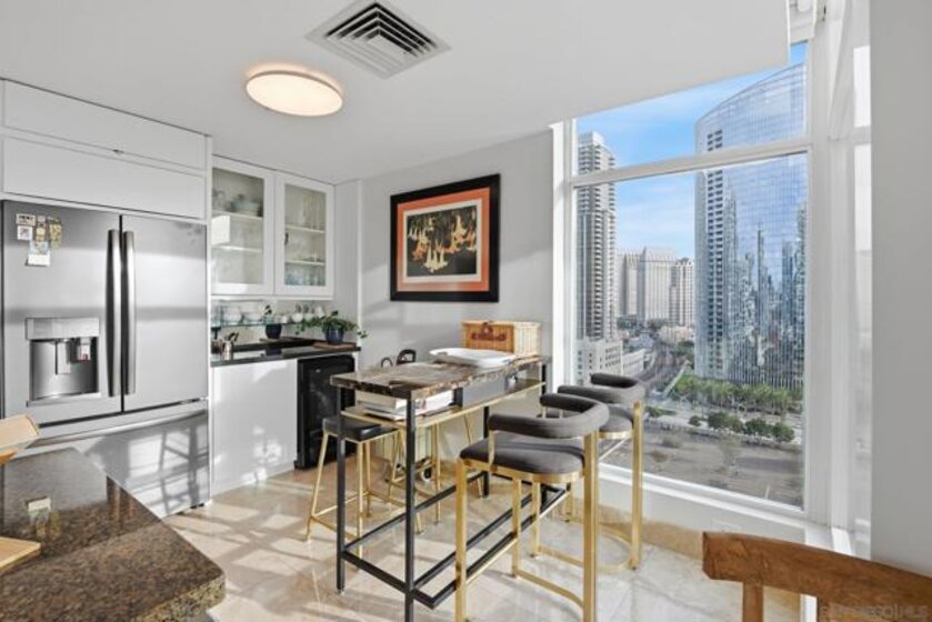 Experience the ultimate in downtown luxury at The Grande at Santa Fe—one of the most coveted residences in the building and the largest floor plan offered. This elegant 2-bedroom + extra room home is perched as close to the bay as the city allows, presenting sweeping panoramic views from Coronado to Point Loma. Floor-to-ceiling triple-pane windows frame the scenery while reducing noise and protecting the interiors from sun exposure. Inside, you’ll find beautifully customized finishes including rich stone counters with full backsplash, custom cabinetry, automatic window coverings, cedar-lined closets, and polished travertine flooring throughout. Parking side by side, near elevator. Ideally located adjacent to the train station and just minutes from the airport, cruis