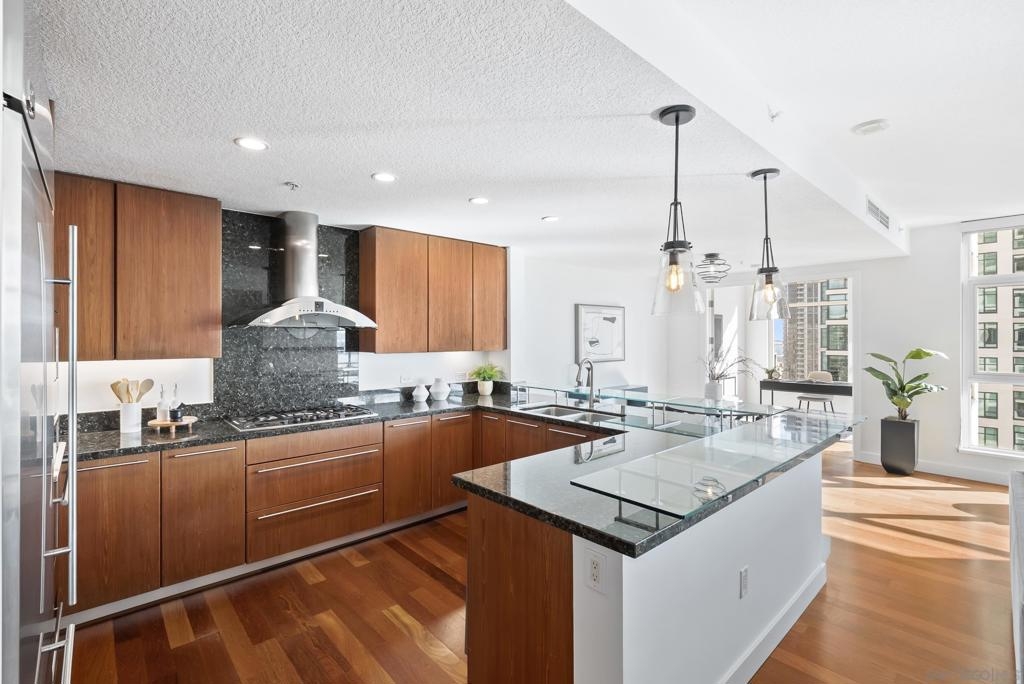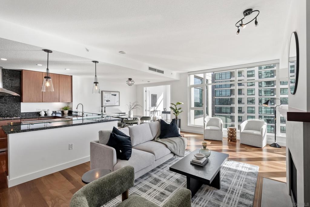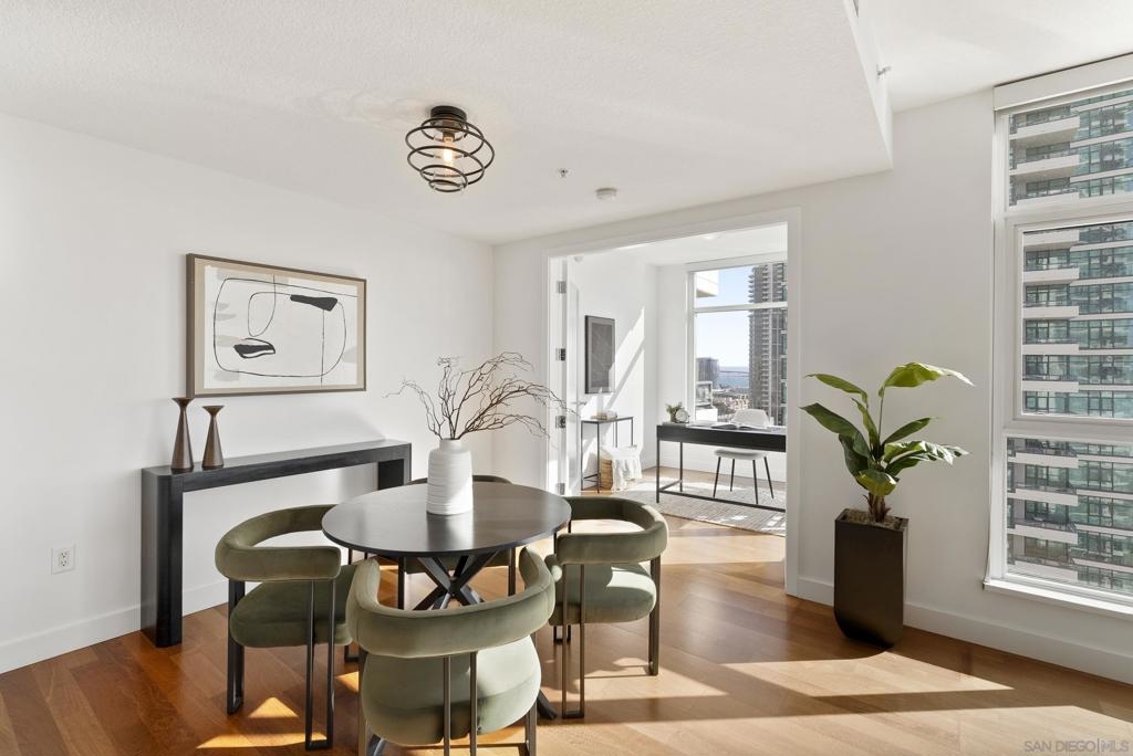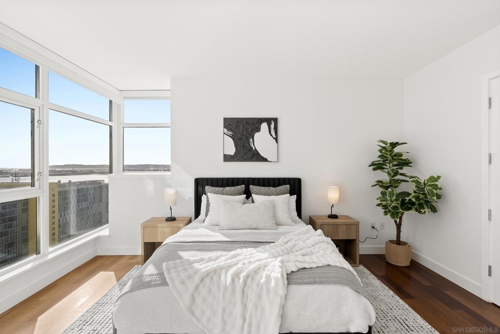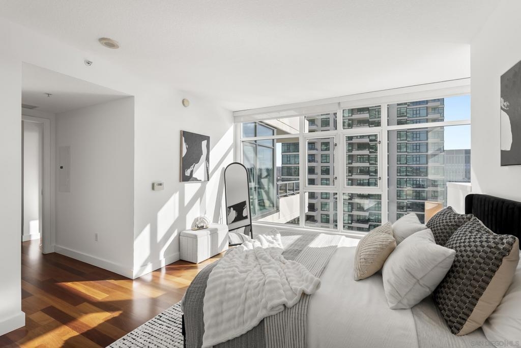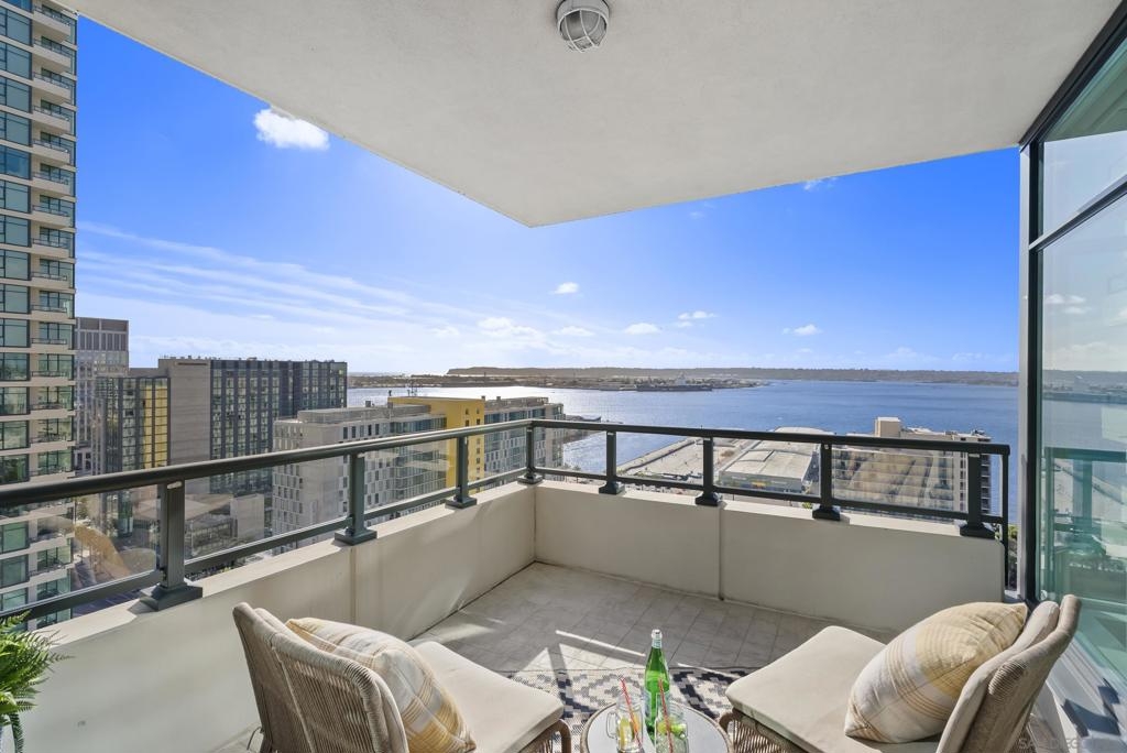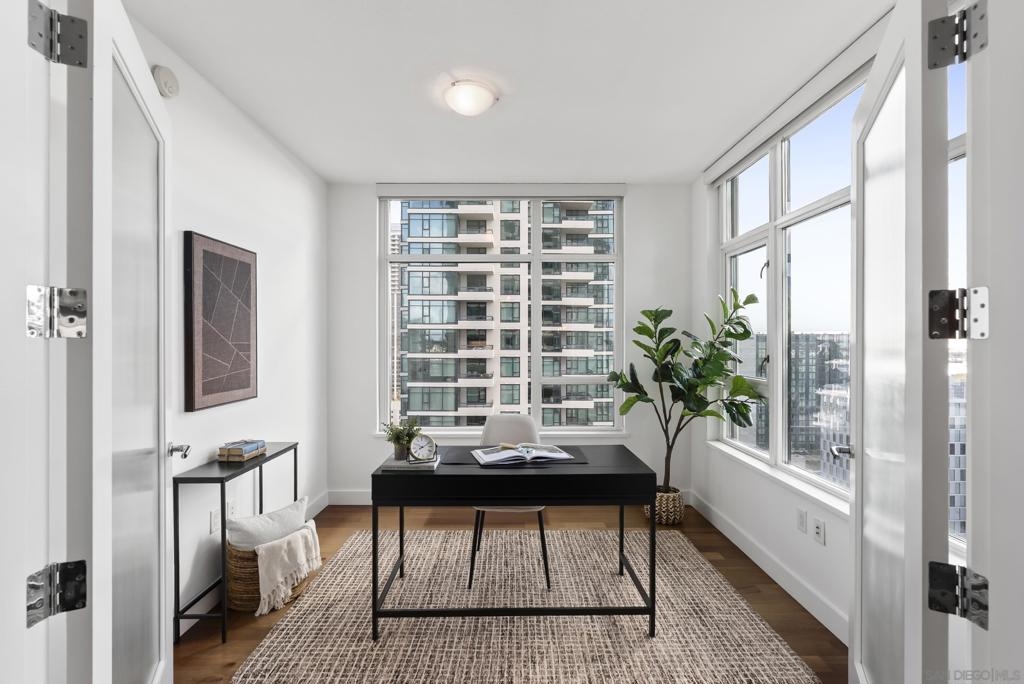 Perched 21 floors above the San Diego Bay, this rare residence at The Grande North offers one of the most coveted vantage points in the building. This expansive 2-bedroom plus office, 2-bath home is widely regarded as one of the premier orientations in the tower—celebrated for its breathtaking panoramic views of the bay, Pacific Ocean, and glittering downtown skyline. Walls of glass frame unforgettable sunsets and ever-changing waterfront scenery, filling the open living and dining areas with natural light. A dedicated office provides flexibility for remote work or a private retreat, while the thoughtful layout balances openness with refined separation—ideal for both entertaining and everyday living. The Grande North is one of downtown San Diego’s landmark luxury towers, known for discretion, security, and elevated standards. Residents enjoy 24-hour security, concierge service, controlled access parking, private storage, and multiple high-speed elevators. Resort-level amenities include an 80-foot lap pool, spa, sauna and steam rooms, a state-of-the-art fitness center, elegant resident lounges, outdoor barbecue areas, and a private guest suite. Located in the prestigious Columbia District, steps from Waterfront Park, the bayfront promenade, Seaport Village, and downtown’s finest dining and entertainment, this is walkable urban living at its most refined. Opportunities in The Grande North are rare—this is more than a residence; it is a distinguished holding in one of San Diego’s most iconic addresses.