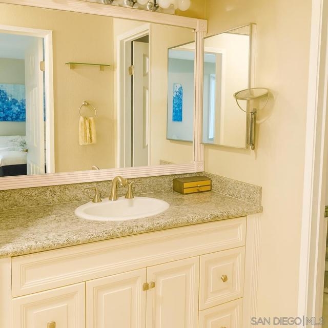 Charming upper-level unit offers an open floor plan with a bright living area, dining space, and a private balcony ideal for morning coffee or evening relaxation. Enjoy an upgraded kitchen featuring modern cabinetry, granite countertops, and stainless steel appliances. The spacious primary bedroom includes generous closet space, while the updated bathroom offers contemporary fixtures and stylish finishes. Upgraded with dual-pane windows, and assigned parking for added convenience. Located in a resort-style community with lush landscaping, you’ll enjoy two sparkling pools, a spa, clubhouse, fitness center, laundry facilities, and peaceful walkways along the nearby river. Easy access to shopping, dining, the trolley, SDSU, USD, and major freeways—plus just minutes to beaches and downtown—this home delivers an unbeatable blend of comfort and lifestyle.