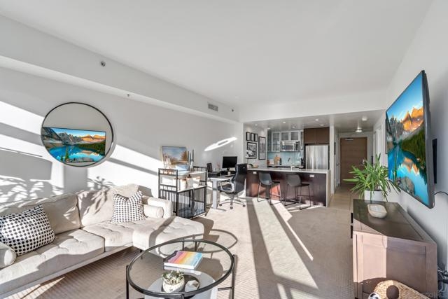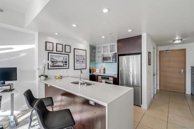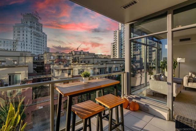 Modern elegance meets downtown vibrance in this stunning Aria residence, located in the serene Cortez Hill neighborhood. Bright and airy with a west-facing orientation, this home captures sweeping city views of the Downtown skyline, the historic El Cortez & spectacular sunsets – a perfect spot to unwind after a busy day. Designed for effortless living, the open-concept layout features high ceilings, oversized windows, and seamless flow between the living, dining, and kitchen areas—ideal for entertaining or relaxation. The contemporary kitchen impresses with stainless steel appliances, sleek quartz countertops, and ample storage. Meanwhile, the spacious bedroom features a large walk-in closet and convenient dual access to the bathroom. Additional highlights include an in-unit washer and dryer, assigned underground parking, and a rare private storage room, located directly in front of the parking space. Aria is a VA & FHA approved community, and residents enjoy an exceptional amenity collection, including a fully equipped fitness center, a 70-foot lap pool and spa, a stylish clubroom with a theatre area featuring lounge seating, a wet bar, and a dining/meeting area. With its peaceful, residential feel and close proximity to Balboa Park, Little Italy, the Gaslamp Quarter, Tweet Street Park, bus and trolley transportation, Petco Park, East Village, and the bayfront, this home offers the perfect balance of calm and connectivity. Aria — where contemporary design, city views, and resort-style living come together beautifully in the heart of Cortez Hill of Downtown San Diego. Aria is a VA & FHA approved community, and residents enjoy an exceptional amenity collection, including a fully equipped fitness center, a 70-foot lap pool and spa, a stylish clubroom with a theatre area featuring lounge seating, a wet bar, and a dining/meeting area. With its peaceful, residential feel and close proximity to Balboa Park, Little Italy, the Gaslamp Quarter, Tweet Street Park, bus and trolley transportation, Petco Park, East Village, and the bayfront, this home offers the perfect balance of calm and connectivity. Aria — where contemporary design, city views, and resort-style living come together beautifully in the heart of Cortez Hill of Downtown San Diego.