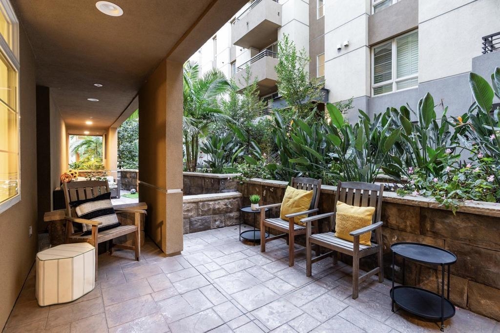 Welcome to this highly sought-after residence offering an impressive 1,100 sq ft of private outdoor space. Designed for seamless indoor–outdoor living, the home opens effortlessly to an expansive yard, perfect for entertaining or unwinding in a tranquil setting. The front entry welcomes you through a private courtyard framed by lush greenery and tranquil water features, creating a serene arrival experience. Elevators located just steps away provide direct access to your parking spaces in the upper garage, blending everyday convenience with refined urban living. Enjoy the rare comfort and privacy of a single-family-home feel in the heart of the city. Union Square is ideally positioned across the street from the 4.1 acre East Village Green park which is a wonderful addition to the neighborhood! The development will include a community center, children’s park, off-leash dog areas, cafés, plazas, multiple lawn areas, a performance pavilion and underground parking. With a Walk Score of over 90, Union Square is also steps from San Diego City College with convenient access to major freeways: 163, 5, and 94. Adding to the neighborhood’s safety and peace of mind, the San Diego Police Department (SDPD) headquarters is located directly across the street. Union Square Condominiums deliver exceptional value with below-average HOA fees. Amenities include a fitness center, pool, sauna, clubhouse with a pool table, and courtyards with BBQs. The HOA also covers key utilities such as water and trash, adding even more value for homeowners. An on-site property manager ensures smooth day-to-day operations, while multiple communal EV charging stations make powering your electric vehicle easy.