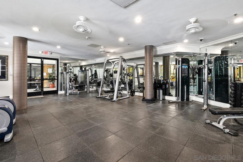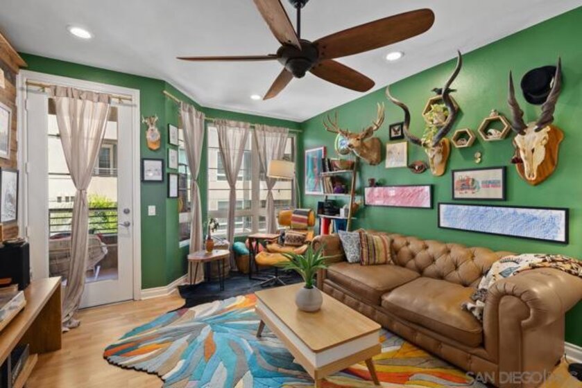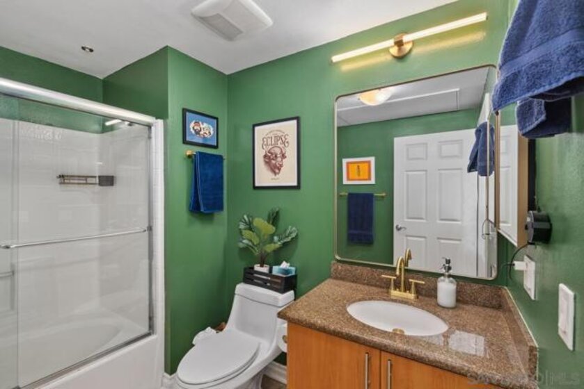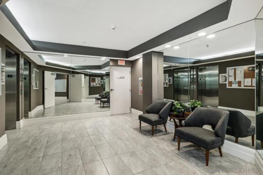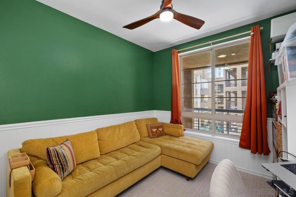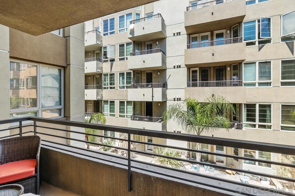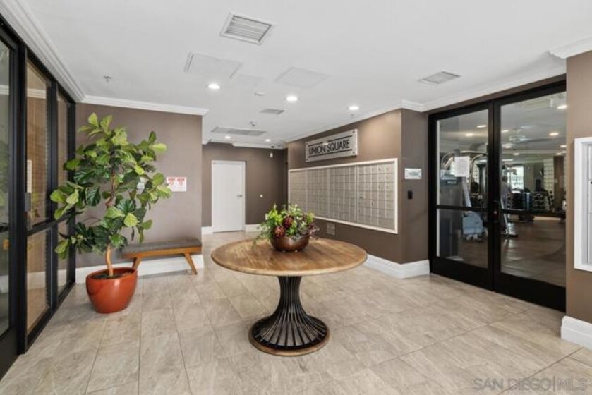 Beautiful, move-in-ready luxury residence in Union Square, ideally located in the vibrant and highly sought-after East Village of downtown San Diego. This bright, inviting home features wood laminate flooring, recessed lighting, and a thoughtfully designed open floor plan. The living area includes a custom accent wall and opens to a private patio overlooking the community—perfect for indoor-outdoor living. The kitchen offers granite countertops, European-style cabinetry, and pendant lighting, flowing seamlessly into the dining and living areas. The layout includes two bedrooms and two full baths in a desirable dual primary suite design. The main bedroom features French doors to a balcony, while the en-suite bath includes a granite vanity and walk-in closet. Additional highlights include in-unit laundry, two tandem parking spaces, and private storage. Enjoy resort-style amenities: fitness center, clubroom, spa, sauna, BBQ area, and secure access. Close to dining, shopping, Petco Park, Gaslamp Quarter, Little Italy, Balboa Park, and more.