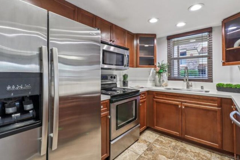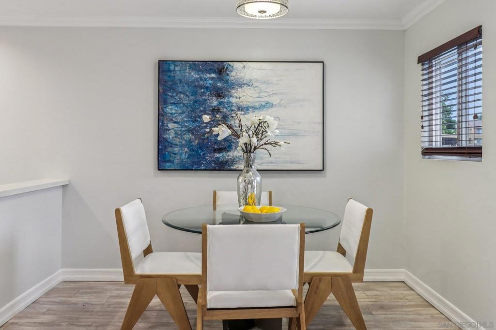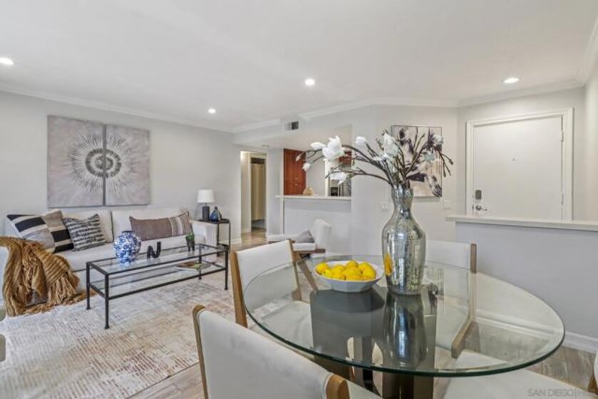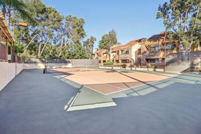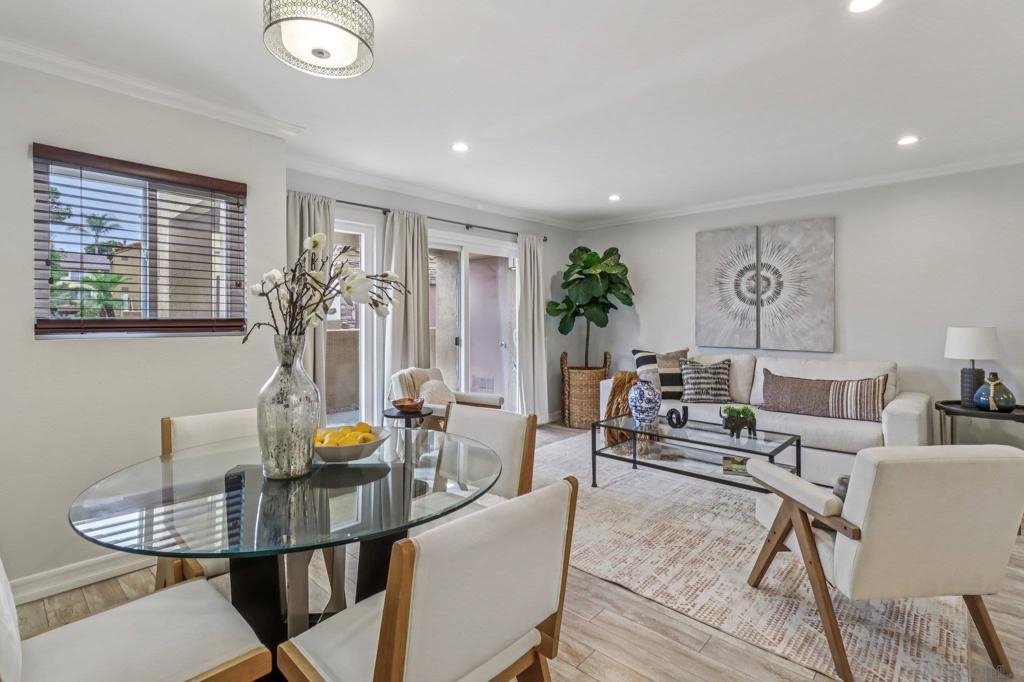 Beautifully updated and move-in ready, this lower-level 1-bedroom condo in the desirable Villa Taviana community offers style and convenience. The bright, open floor plan features a spacious living room with crown molding and an adjoining patio for seamless indoor-outdoor living. The kitchen, complete with breakfast bar, stone counters, stainless appliances, and ample cabinetry, flows into the dining and living areas—perfect for entertaining. The king-sized bedroom includes a walk-in closet with custom barn doors, while in-unit laundry and a large storage closet add practicality. New AC! Villa Taviana provides resort-style amenities including two pools and spas, a fitness center, tennis courts, clubhouse, playground, BBQ areas, and EV charging stations. Located within the acclaimed Poway Unified School District, with Turtleback Elementary nearby, plus easy access to shopping, recreation, and freeways, this home is the perfect blend of comfort, convenience, and community.
