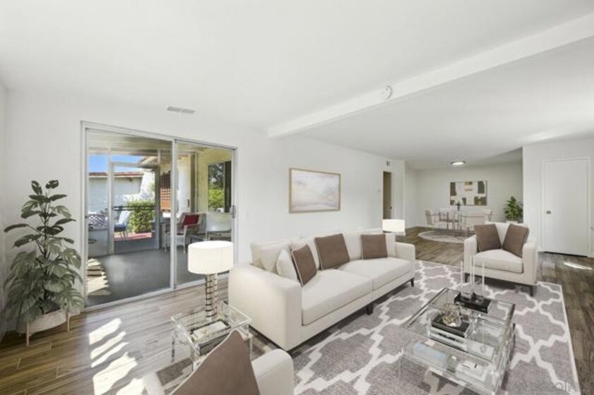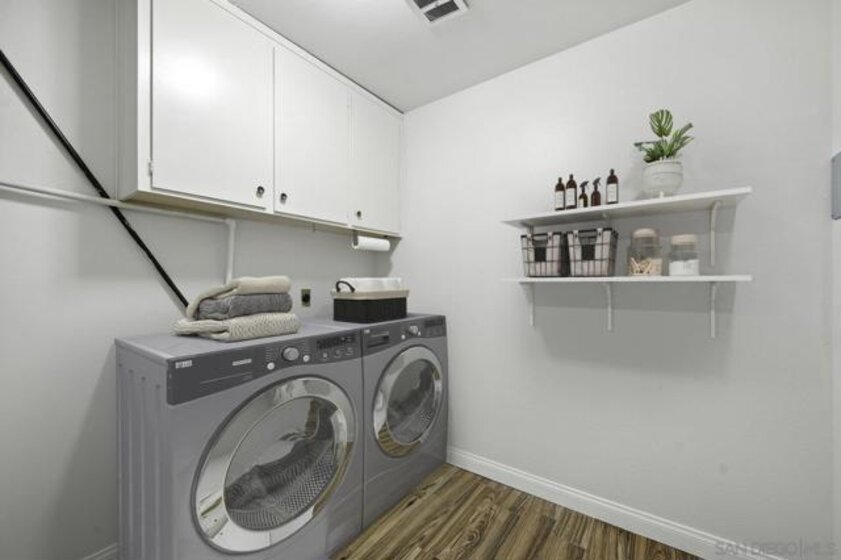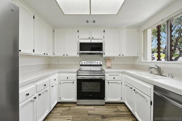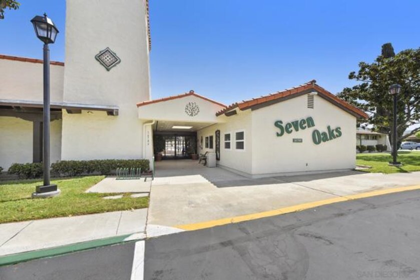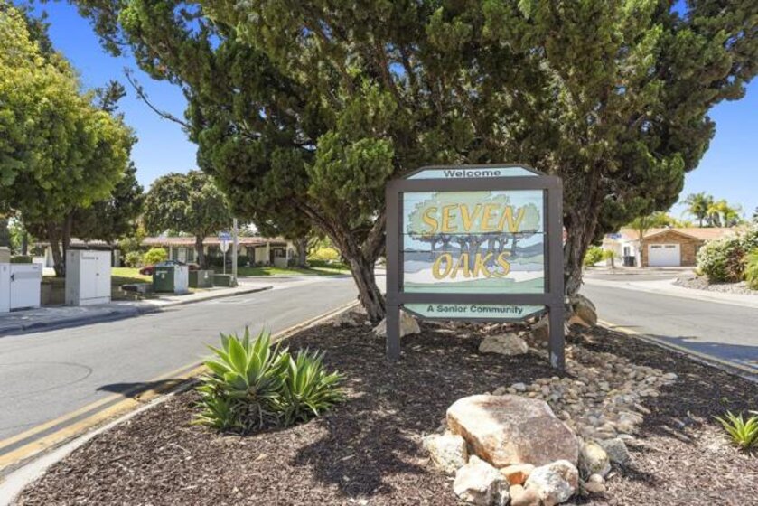 Welcome to a single-level condominium that offers thoughtful design, rare privacy, and everyday livability—tucked into one of the most peaceful locations in the sought-after 55+ Seven Oaks community. With NO shared walls and no neighboring residences to the front or sides, this home is ideally positioned at the front of a private, interior cul-de-sac, surrounded by mature trees in a tranquil, park-like setting. It feels set apart in its serenity, yet remains close and convenient to shopping, healthcare, and daily essentials. Recently refreshed, this 2-bedroom, 2-bath condo features smooth ceilings, fresh paint, updated flooring throughout and new roof. The kitchen includes all brand-new appliances and the interior laundry room fits full-size appliances—an often-overlooked luxury that adds convenience to daily living. The enclosed patio extends the living space, while an additional outdoor sitting area offers a spot to dine al fresco and enjoy San Diego’s sunshine. Covered parking and locked storage—spacious enough for bikes or even a golf cart—are conveniently located close to the condo. As a resident, enjoy access to the nearby Seven Oaks Community Center featuring pickleball courts, pool and spa, a fitness center, art rooms, and an active calendar of events. Whether you're social or serene, you'll find a lifestyle that fits your pace. Located near I-15, major shopping centers, golf courses, RB Winery and more —this low-maintenance condo offers lasting comfort and a warm sense of community in the heart of Rancho Bernardo.