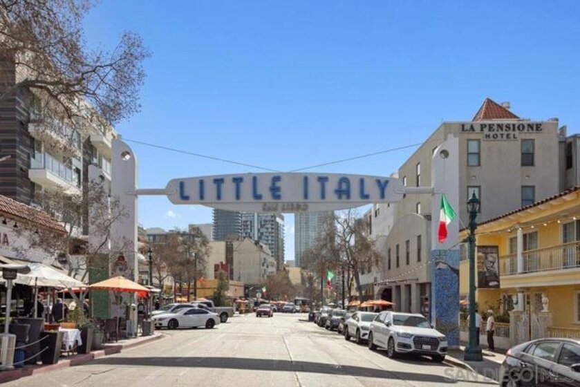 Welcome to Unit 513 at Porto d’Italia, a rare penthouse opportunity in the heart of Little Italy. Perched on the top floor of this sought-after community, this beautifully appointed 2-bedroom, 2-bath home offers an unbeatable blend of charm, convenience, and vibrant city living. Step outside your door and find yourself immersed in the very best of Little Italy — award-winning restaurants, charming cafés, boutique shops, and the beloved weekly Farmers Market, all just moments away. You’ll also enjoy easy access to the waterfront, public transportation, and San Diego International Airport. Despite its central location, the home is tucked into a serene pocket of the neighborhood, offering a peaceful retreat above the energy below. Inside, the residence offers an open, inviting layout and a spacious primary suite with a walk-in closet. Thoughtful updates elevate the space, including refreshed cabinetry with matte black hardware, updated sinks and light fixtures in the kitchen and both bathrooms, and floating shelves in the primary bath. One dedicated parking space is included in the secure underground garage, along with access to community amenities such as a beautifully maintained courtyard patio with two BBQs and gorgeous bay views, plus a fully equipped fitness center conveniently located on the first floor. Opportunities on this level in Porto d’Italia are exceptionally rare, making this a truly special offering in one of San Diego’s most walkable, lifestyle-driven neighborhoods.