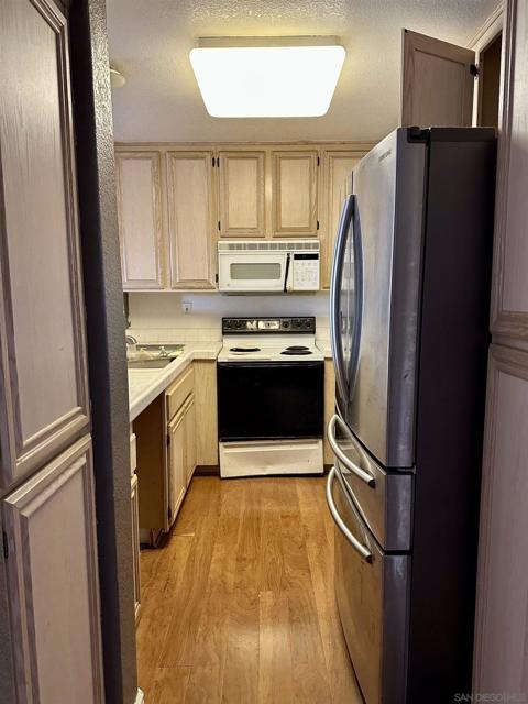 Incredible opportunity to build instant equity in a prime Linda Vista location. This condo is a true canvas, ready for your creative touch. The open-concept living room and kitchen create a spacious feel, while the layout places the bedrooms on opposite ends for maximum privacy. Enjoy indoor-outdoor living from the primary suite's covered patio, a peaceful retreat to unwind after a long day. The community itself is a relaxing escape, featuring a sparkling pool and soothing spa. With two dedicated parking spaces—one in a garage and a second outdoor space—convenience is a top priority. Don't miss this chance to customize a home in one of San Diego's most central neighborhoods.