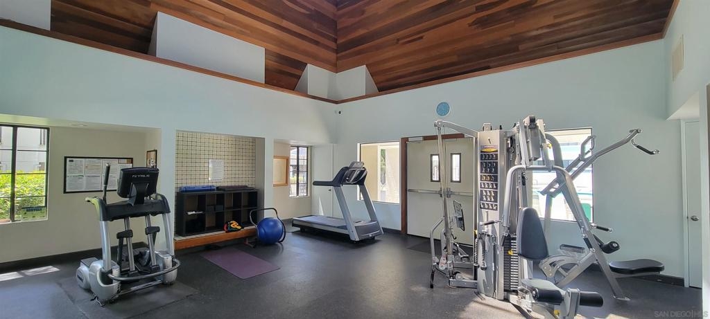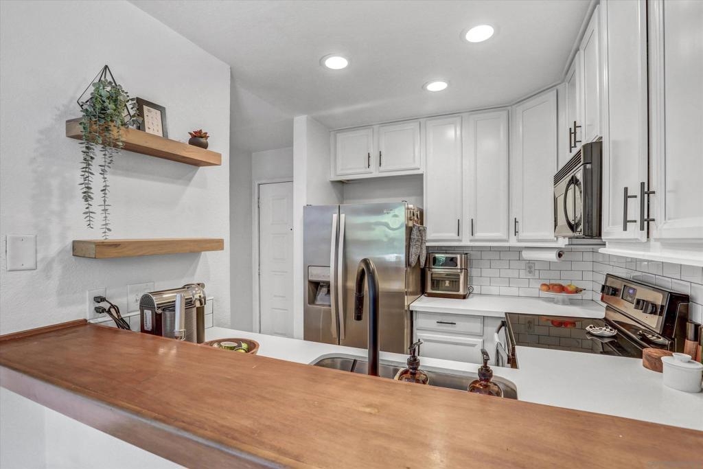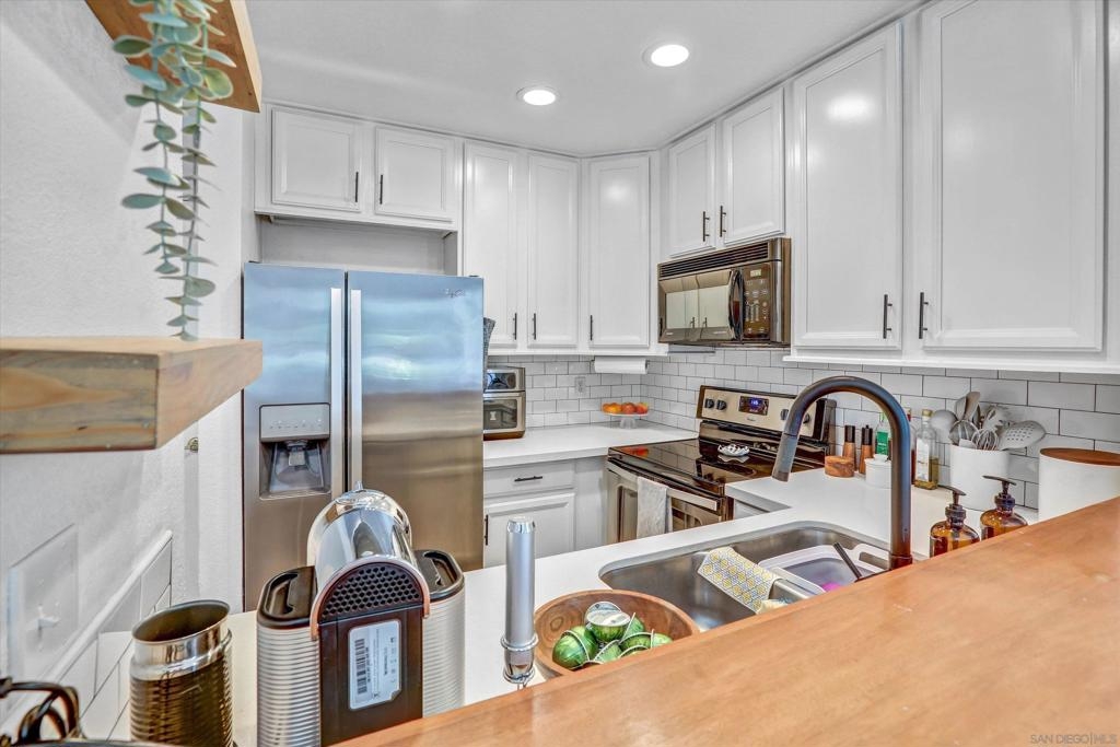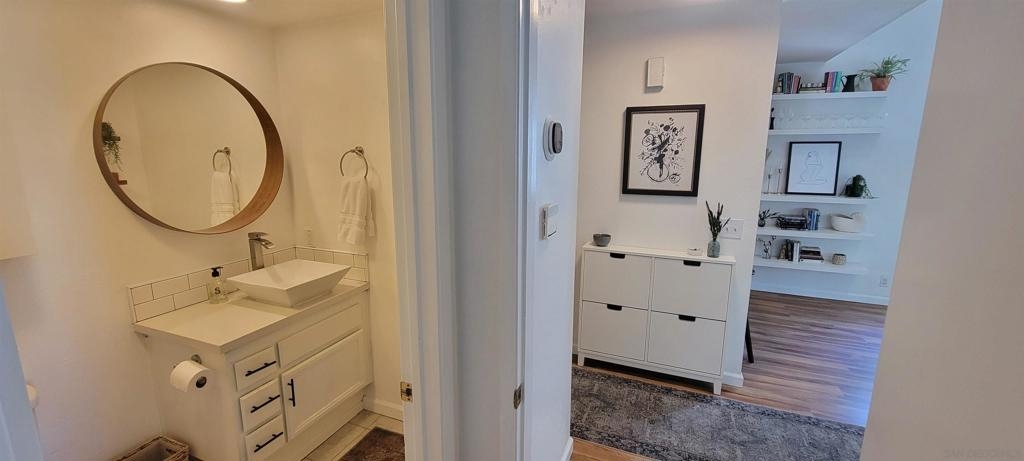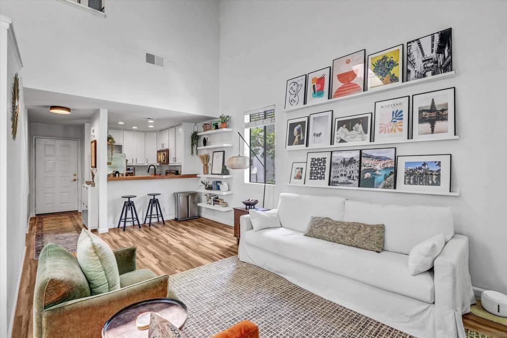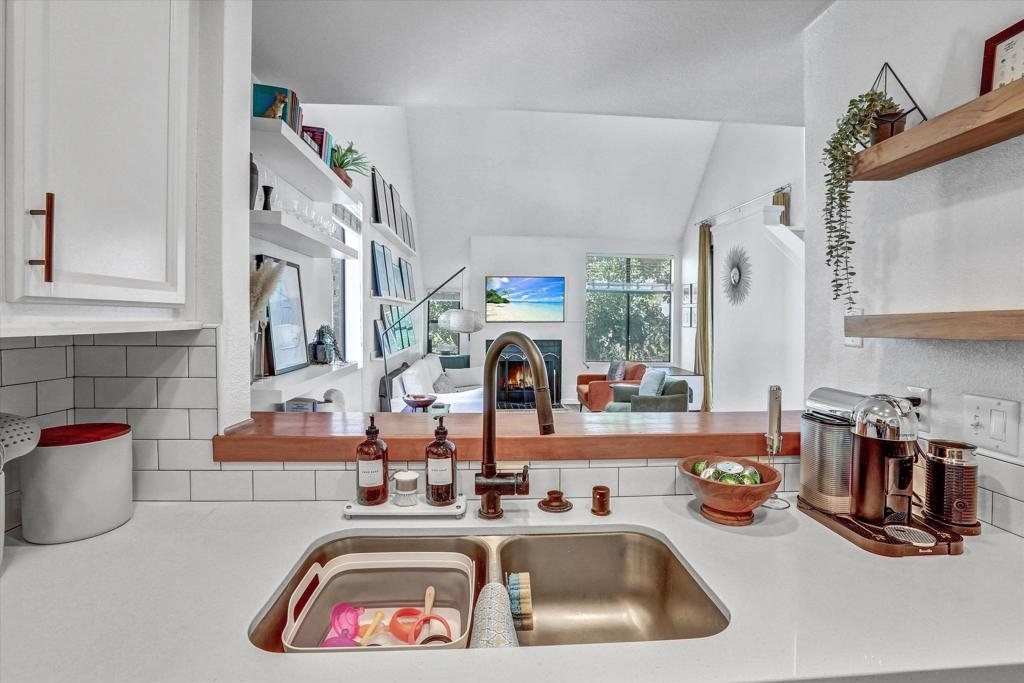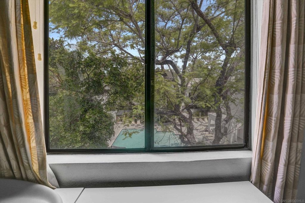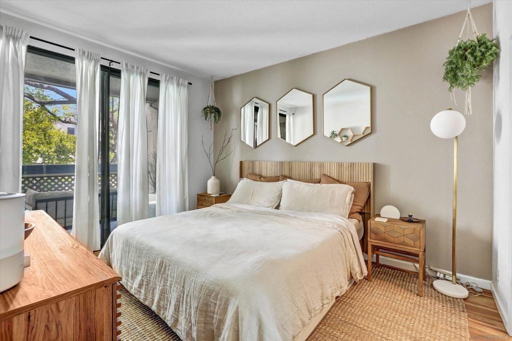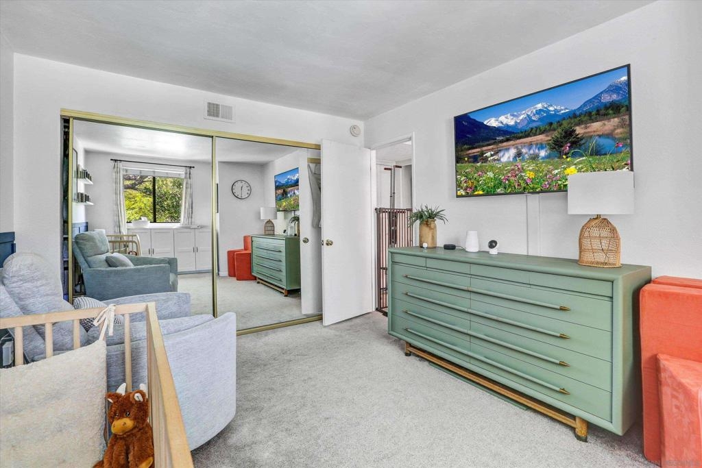 Welcome to Creekwood at River Run in the heart of San Diego! This turnkey two-bedroom condo features dramatic vaulted ceilings, two primary suites with the second-floor master having the option of its own entrance. In-unit laundry, updated kitchen with quartz counters, stainless steel appliances, LVP flooring and private patio. Updated bathrooms and located one block west of Costco, Ikea and walking distance to shops, restaurants, Starbucks. The community features water features throughout, a pool/spa and exercise room. Welcome to your future home in the highly sought-after Creekwood condominium complex, nestled in the vibrant Mission Valley area of San Diego. This stunning 2-bedroom, 2-bathroom condo is the epitome of modern living, boasting tasteful updates and an array of desirable features that make it the perfect choice for first-time buyers or anyone looking to experience the best of urban convenience and comfort. As you step inside, you'll immediately notice the abundance of natural light that floods the open-concept living space, creating a warm and inviting atmosphere. The updated living area flooring flows seamlessly into the dining space and the beautifully updated kitchen, which features sleek quartz countertops, professionally painted cabinetry new hardware and stainless appliances. The bathrooms have been updated with tiled showers and new vanities. The two spacious bedrooms are designed with comfort in mind, each offering ample closet space and large windows that enhance the bright and airy feel.