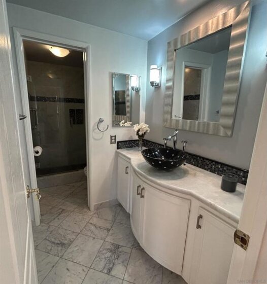 Superb spacious 2-bedroom corner unit, boasting brilliant natural light and fresh air. Located in excellent Bankers Hill neighborhood overlooks San Diego Harbor and the Airport. Located blocks away from Balboa Park and Downtown. Enjoy living in this vibrant neighborhood that perfectly blends urban living with a touch of tranquility. Albatross St and surrounding streets are quiet and pedestrian-friendly with plenty of street parking. This unit was just freshly painted. It features Newman floor-to-ceiling double pane windows with shutters throughout the unit. Upgrades include wood floors, custom-made kitchen and bathrooms cabinets with natural stone, quartz and marble countertops. The kitchen has abundant cabinet space, recessed lighting and newer appliances. Both bathrooms have glass enclosed showers with top of the line fixtures. You'll be gladly surprised with the amount of storage and closet space throughout the house. If you happen to be downsizing: "bring it all!" Primary bedroom includes three closets spaces, including a real walk-in-closet. You'll appreciate the second bedroom's versatility as a home office with built-in furniture and as a bedroom with a convenient Murphy bed; turn this space from a home-office into a guest bedroom in seconds. The building includes a private underground garage with one assigned parking space and storage unit.