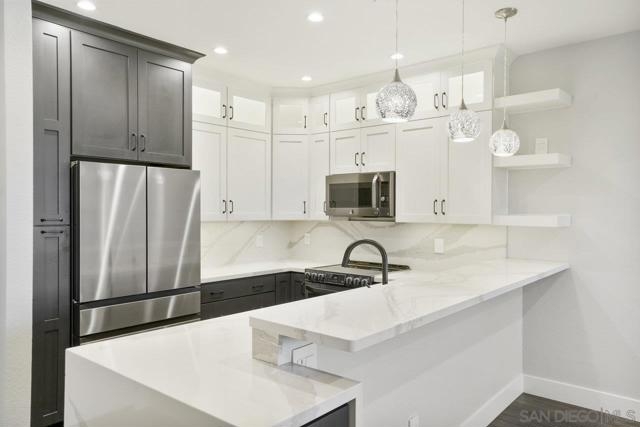 Welcome to this luxuriously remodeled condo in the highly sought-after Bankers Hill neighborhood. Thoughtfully upgraded with no expense spared, this home has been freshly painted and includes a newer AC unit for modern comfort and efficiency. Featuring custom soft-close cabinetry, stunning Cambria Quartz countertops in the kitchen and bath, Brizo designer faucets, and high-end appliances, every detail has been carefully curated. The open-concept living space is enhanced by Haiku ceiling fans, high-tech wiring and lighting, and luxury vinyl flooring throughout. The primary suite boasts custom barn doors, a beautifully designed en-suite bath, and an Elfa closet system for optimal storage. Enjoy the convenience of secure underground parking, plus building amenities including a swimming pool and fitness center. Situated in prime Bankers Hill, this home is just minutes from Balboa Park, top restaurants, and downtown San Diego. Don’t miss this rare opportunity to own a turn-key luxury condo in one of San Diego’s most desirable locations!