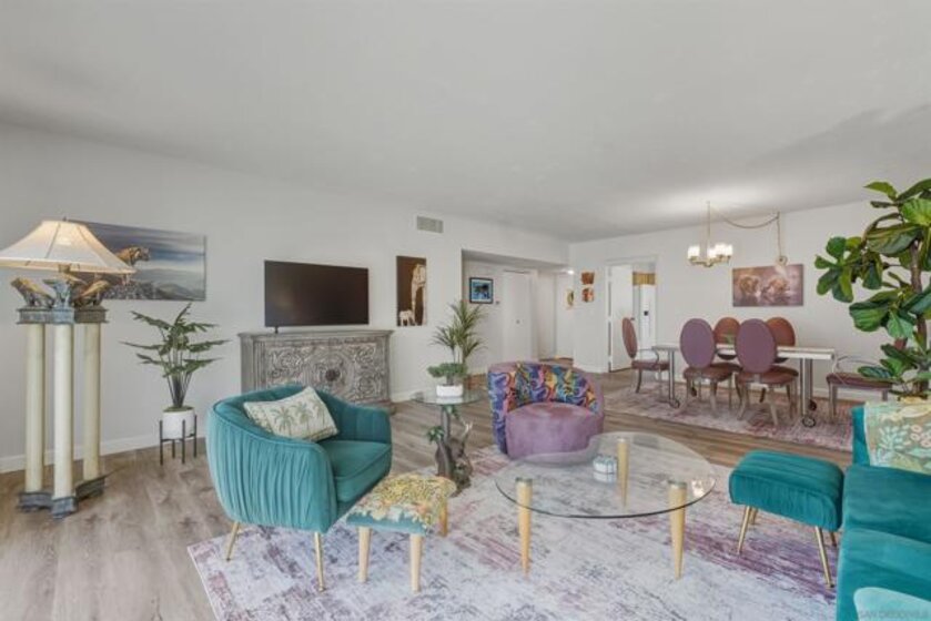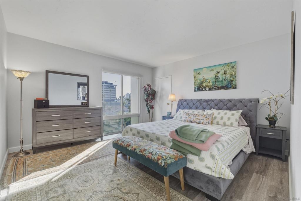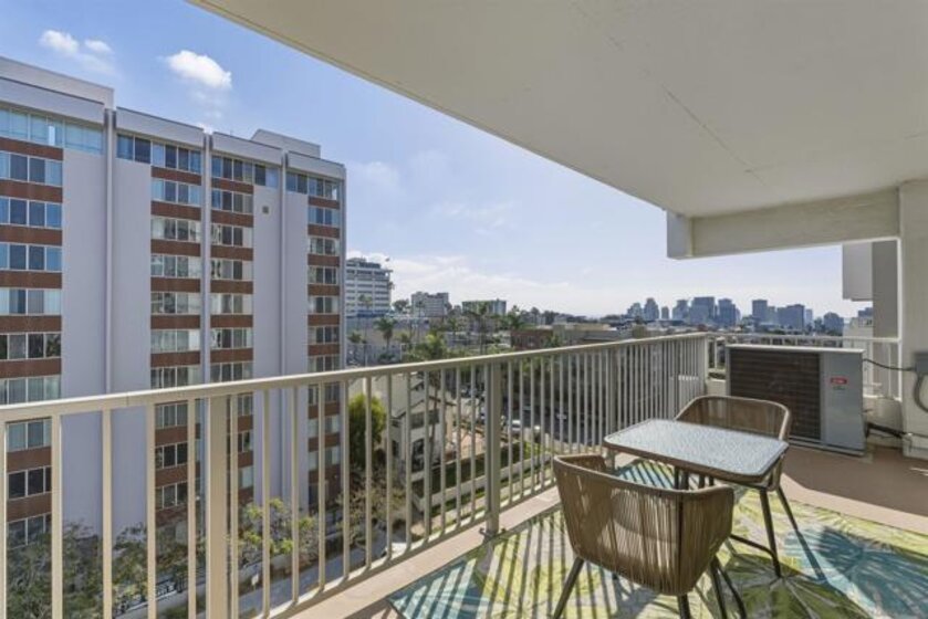 Bankers Hill light and bright 2-bedroom 2-bath condo with 1,327 square feet and 2 secure parking spots. This condo has recently updated flooring, a built-in Murphy bed in the 2nd bedroom, and is on the 7th floor with a spacious exterior deck for lounging and fabulous views. Located close to Balboa Park, Hillcrest, Little Italy, downtown San Diego, restaurants, and shopping. The complex has a large clubhouse, workout rooms, an elevator, and a pool.