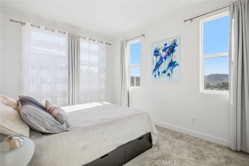 Experience luxury living within the exceptional Civita community by Toll Brothers, perfectly situated near world-class beaches, vibrant downtown destinations, and convenient freeway access. This stunning corner residence sits on a premium lot with unobstructed views and offers 4 bedrooms, 3.5 bathrooms, and 2,301 SF of thoughtfully designed living space, complete with a 2-car garage. Designer-selected finishes elevate nearly every space and are complemented by premium upgrades including KitchenAid stainless steel appliances, a side-by-side washer and dryer with pedestals, tankless water heater, owned solar, a NEMA electric vehicle charging outlet, and enhanced insulation. The first floor features a private bedroom with a full bathroom, ideal for guests or a home office, along with a modern entry hallway and an oversized under-stair storage closet. The second floor showcases an expansive open-concept living area anchored by a chef-inspired kitchen with a large center island wrapped in designer finishes. Highlights include ceiling-height cabinetry, dovetail soft-close drawers, designer hardware, a full island wrap, and striking quartz slab countertops. Exceptional storage is found throughout the home, including pantry and abundant cabinetry. The third floor is dedicated to comfort and functionality, featuring a spacious primary suite with a beautifully appointed bathroom with shower tiled to the ceiling and an extra-large closet. Two additional bedrooms and a shared full bathroom are thoughtfully positioned on the opposite end of the floor, along with a conveniently located laundry room. Civita offers true resort-style living with a 14-acre park and a spectacular $13 million recreation center featuring amenities such as a sparkling lagoon pool, lap pool, covered patios for year-round BBQs, a game room, and a state-of-the-art fitness club.