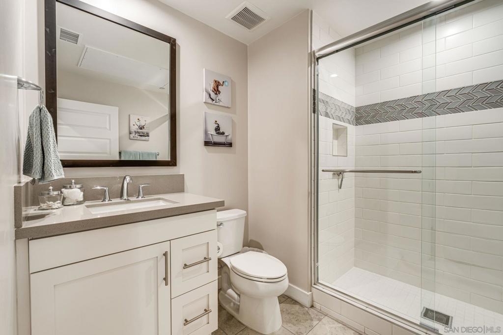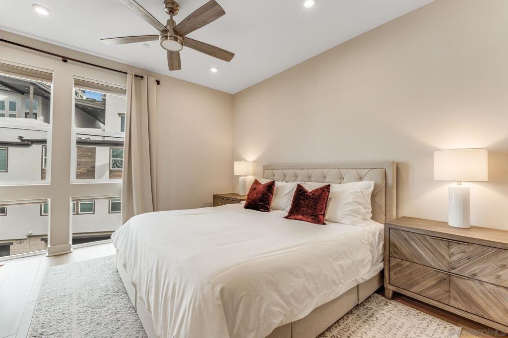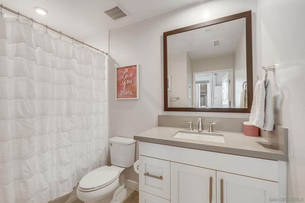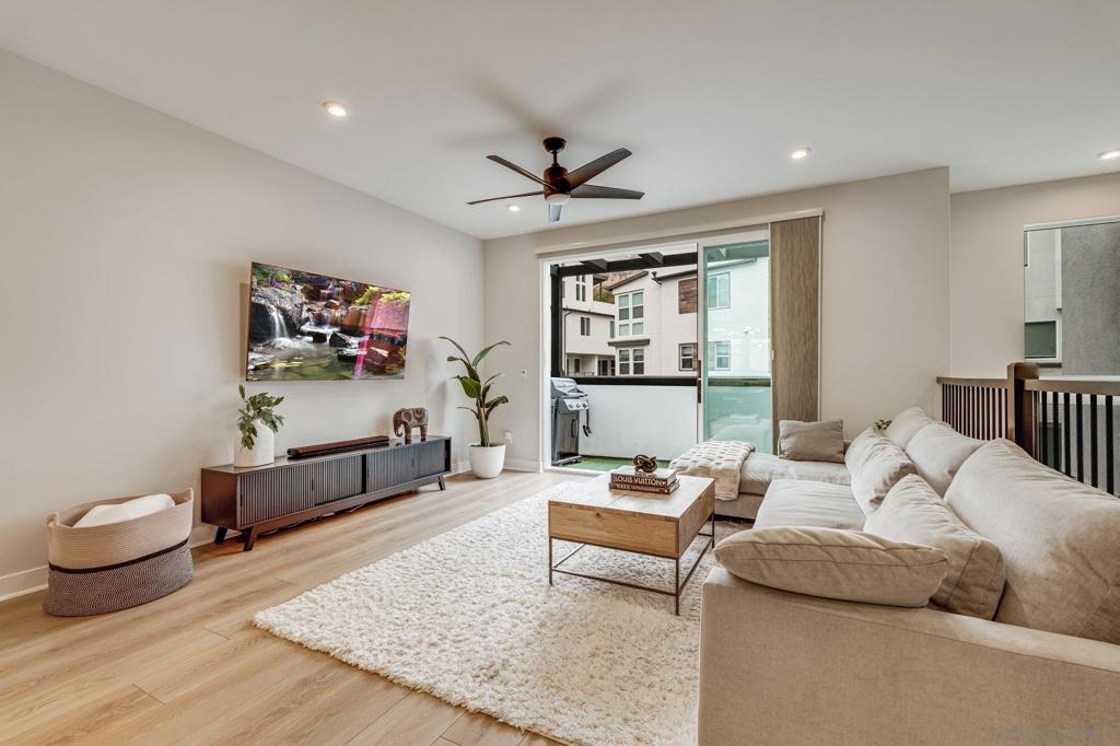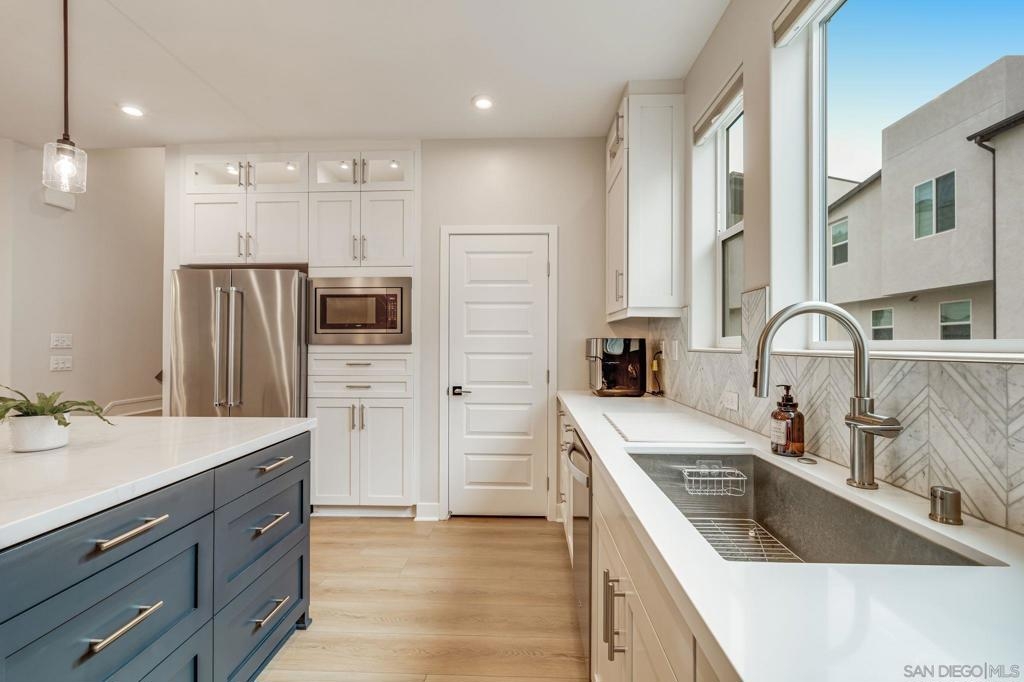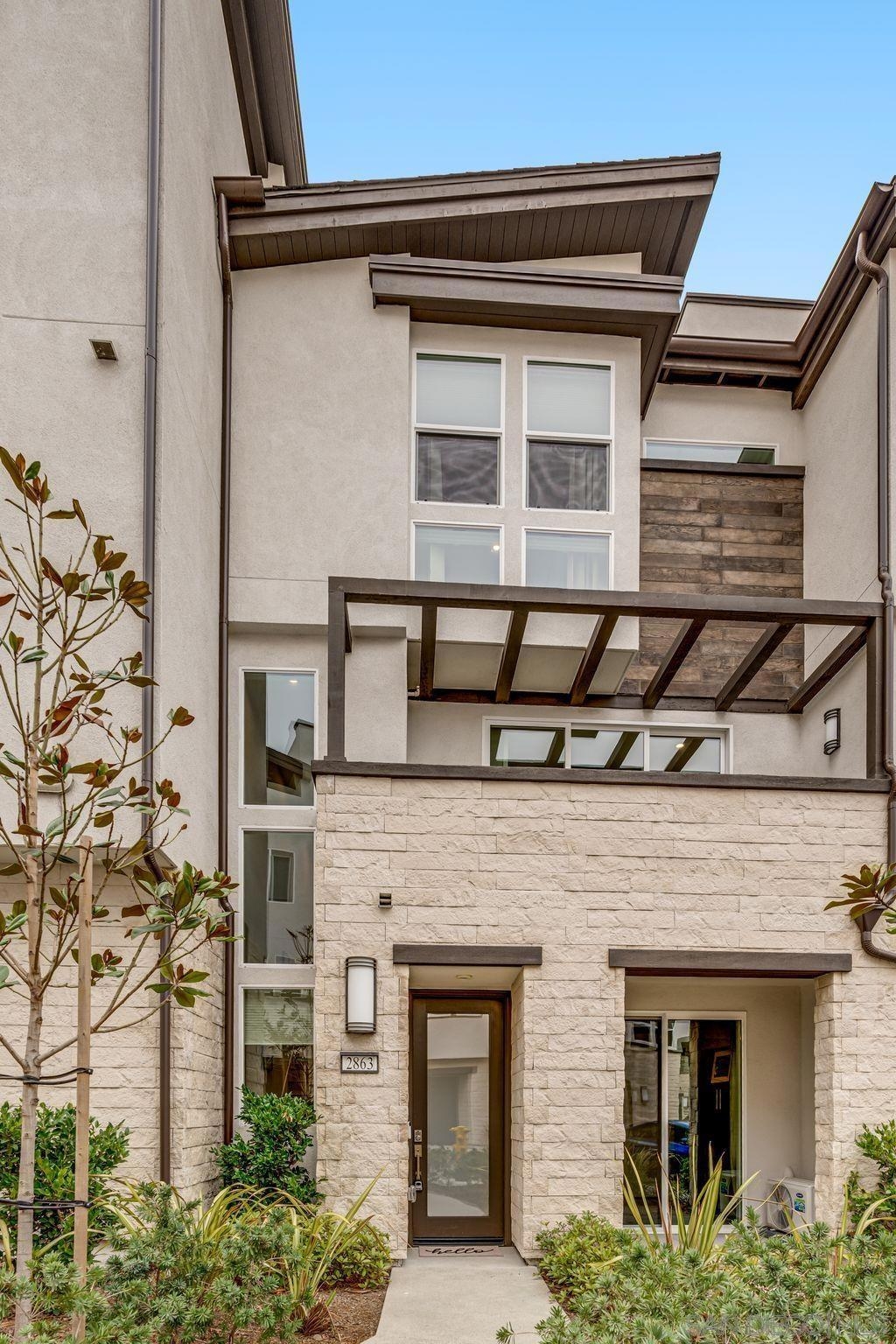 Welcome to elevated living in Avella at Civita, where style meets convenience in Mission Valley’s most sought-after community. This bright and beautifully upgraded 3-bedroom, 3.5-bath townhome is not only move-in ready—it’s the best value currently available in Civita. The flexible entry-level layout includes a private bedroom and full bath—ideal for guests, remote work, or a personal studio. Head upstairs to an open-concept main floor featuring a chef-inspired kitchen with quartz countertops, premium appliances, a wine fridge, walk-in pantry, and generous storage. A half bath and inviting dining space make it perfect for everyday living or entertaining. The third level offers two tranquil bedroom suites, including a spacious primary retreat with modern finishes and a thoughtfully designed layout. Throughout the home, enjoy luxury vinyl plank flooring, smooth drywall finish, a first-floor walk-in shower conversion, and a multi-zone HVAC system for personalized comfort. Unwind or entertain on the expansive rooftop deck with stunning south-facing views—your private escape under the sky. Located steps from the Civita Recreation Center, enjoy resort-style amenities like two heated pools, spas, a top-tier fitness center, multiple parks, walking trails, a dog park, and vibrant social spaces. All this, just moments from shopping, dining, and freeway access. This is Civita living at its finest—don’t miss your chance to call this gem home!