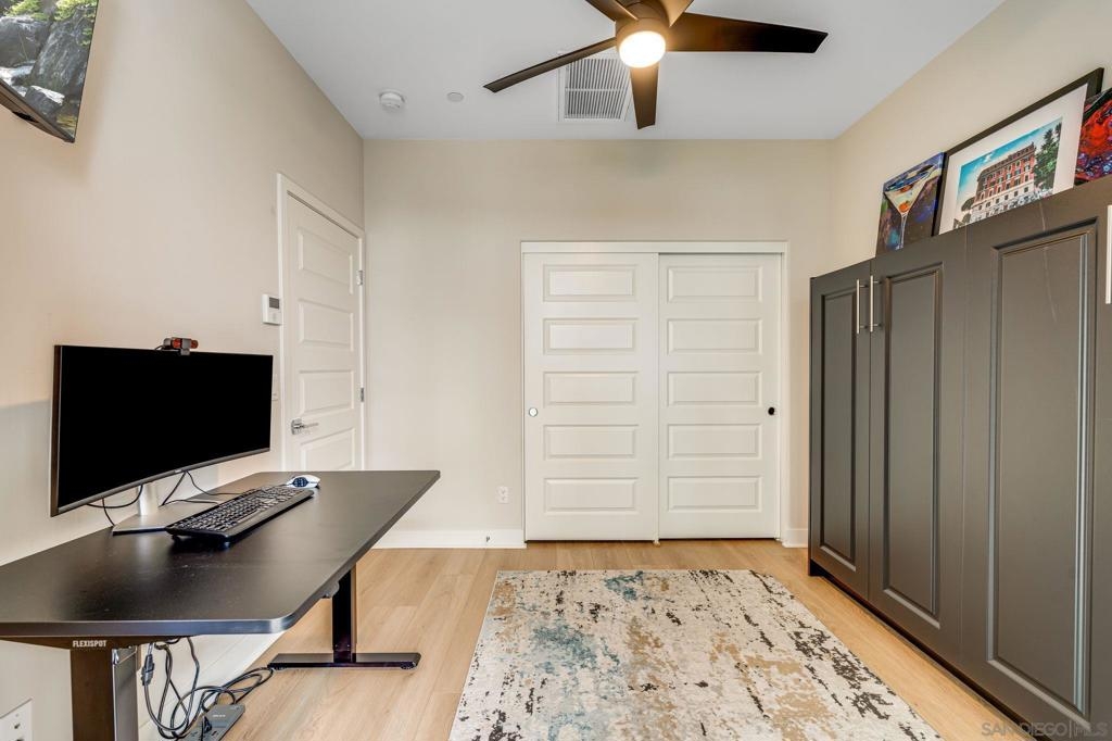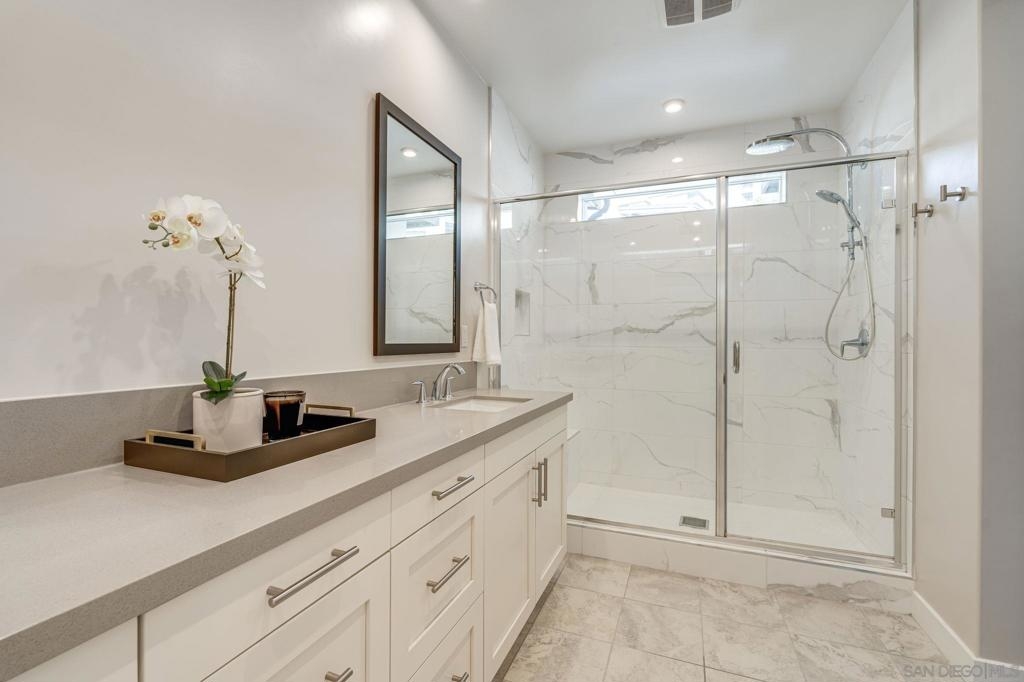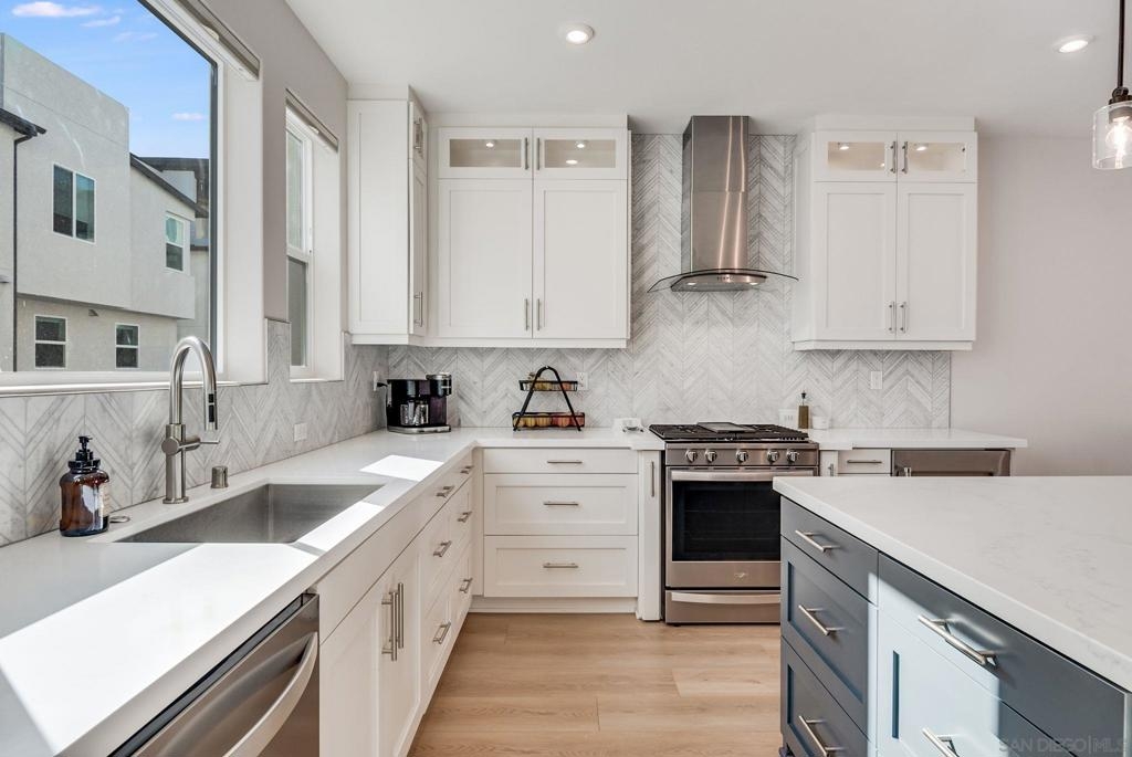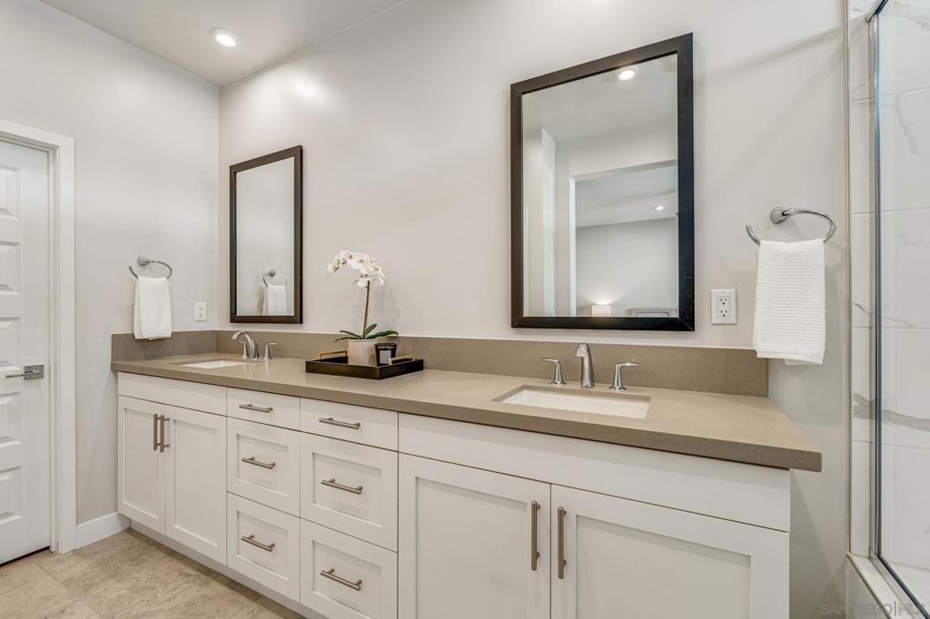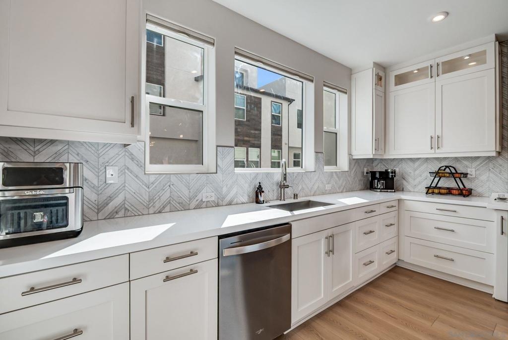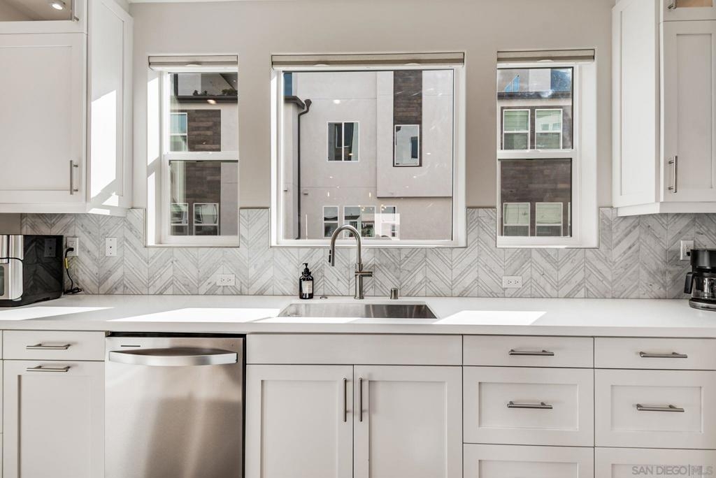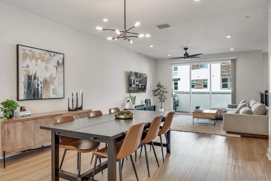 Welcome to elevated living in Avella at Civita, where style meets convenience in Mission Valley’s most sought-after community. This bright and beautifully upgraded 3-bedroom, 3.5-bath townhome is not only move-in ready—it’s the best value currently available in Civita. The flexible entry-level layout includes a private bedroom and full bath—ideal for guests, remote work, or a personal studio. Head upstairs to an open-concept main floor featuring a chef-inspired kitchen with quartz countertops, premium appliances, a wine fridge, walk-in pantry, and generous storage. A half bath and inviting dining space make it perfect for everyday living or entertaining. The third level offers two tranquil bedroom suites, including a spacious primary retreat with modern finishes and a thoughtfully designed layout. Throughout the home, enjoy luxury vinyl plank flooring, smooth drywall finish, a first-floor walk-in shower conversion, and a multi-zone HVAC system for personalized comfort. Unwind or entertain on the expansive rooftop deck with stunning south-facing views—your private escape under the sky. Located steps from the Civita Recreation Center, enjoy resort-style amenities like two heated pools, spas, a top-tier fitness center, multiple parks, walking trails, a dog park, and vibrant social spaces. All this, just moments from shopping, dining, and freeway access. This is Civita living at its finest—don’t miss your chance to call this gem home!