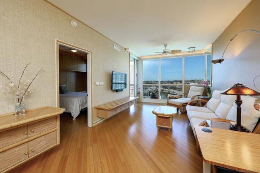 Welcome to sky-high luxury in the heart of Little Italy. Perched on the 19th floor of the highly sought-after La Vita, this turnkey 1-bedroom, 1-bath residence offers an exceptional urban living experience. The desirable north-facing orientation fills the home with soft, natural light throughout the day while minimizing heat, creating a bright and comfortable atmosphere. Step onto your private balcony and enjoy sweeping views of the downtown skyline, Balboa Park, and the sparkling San Diego Bay. Inside, a thoughtfully designed layout blends style and functionality, featuring custom built-ins for optimal storage and sophisticated up and down lighting to set the perfect ambiance. Built with exceptional quality, the residence offers a peaceful, quiet retreat above the vibrant city below. This move-in ready home may be sold fully furnished. Residents of La Vita enjoy a secure, amenity-rich community including a pool, BBQ areas, lush green space with tranquil fountains, a fitness center, bike storage, and one assigned parking space. Located in one of San Diego’s most dynamic neighborhoods, you’re just steps from renowned dining, charming cafés, boutique shopping, and the famous Little Italy Farmers Market. Experience the best of downtown living in a residence that perfectly balances energy, comfort, and style.