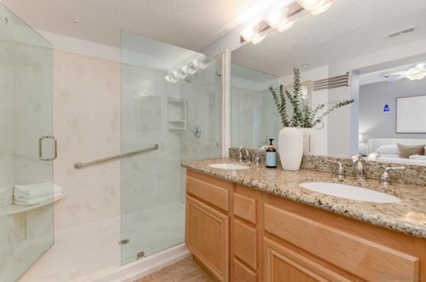 Experience the Best of Indoor-Outdoor Living in the Heart of the Marina District! This impeccably maintained 2-bedroom, 2.5-bathroom townhome at City Walk offers the perfect blend of style, privacy, and convenience. Captivating with its Mediterranean-inspired architecture and two expansive private patios, this rare residence is one of only 12 unique internal townhome-style units in the community. The main level features an open-concept living and dining area that flows seamlessly to both patios, perfect for embracing San Diego’s indoor-outdoor lifestyle. Enjoy solid wood and porcelain tile flooring, in-unit laundry, and generous under-stair storage. The kitchen includes a gas cooktop and an oversized dining bar that opens to the living area, with access to an enclosed private terrace. Upstairs, both bedrooms are thoughtfully designed for comfort and both feature en-suite bathrooms. The spacious primary suite includes a walk-in closet with custom built-ins from The Container Store. This home is set within the beautifully landscaped City Walk, a community offering tranquil courtyards with fountains and waterfalls, fire pits, lounge areas, a fitness center, and reservable spaces with kitchens for private gatherings and all with low HOA dues. Located just steps from Pantoja Park, Seaport Village, Little Italy, Gaslamp Quarter, The SHELL, Petco Park, and trolley stations, this home offers walkable access to everything Downtown San Diego has to offer-while still providing a peaceful, residential atmosphere.