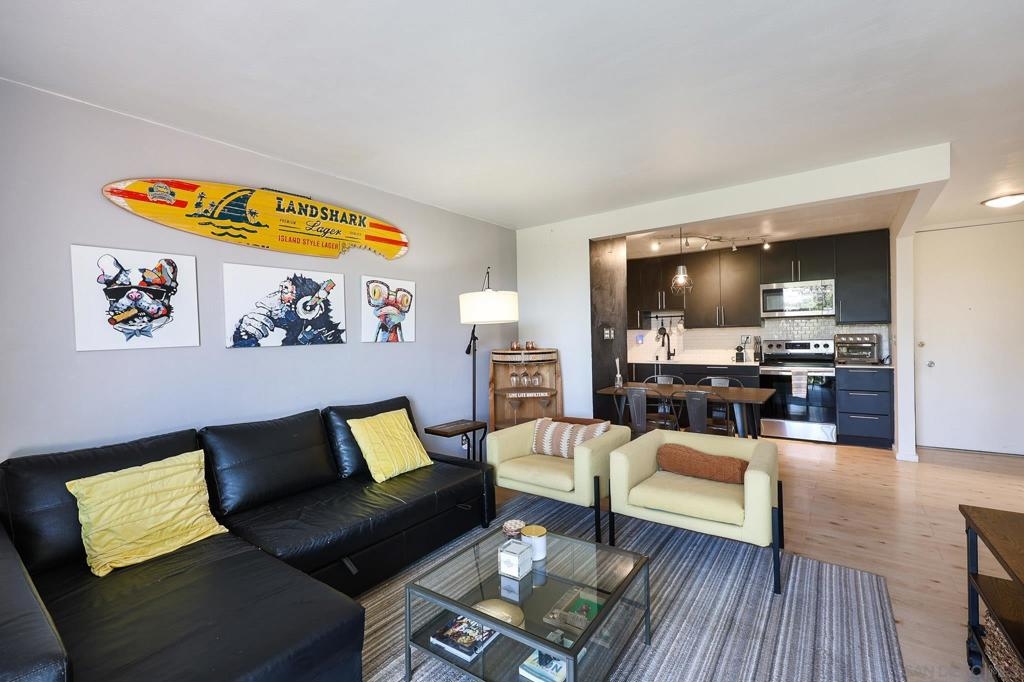 Welcome to Pacific Isle — one of Point Loma's premier gated resort-style communities. This beautifully updated 2nd floor 1BD/1BA condo is perfect for the first time buyer professional, or investor alike. Step inside and you'll immediately feel the difference: luxury vinyl plank flooring, fresh paint, updated dual-pane windows, upgraded lighting, and a sleek modern kitchen with stainless steel appliances and quartz countertops. The spacious bedroom is bright and airy, and the unit includes an upgraded electrical panel and new ac units. The Pacific Isle amenities are debatably the best of any condo complex in San Diego: an oversized heated pool and spa with showers, a fully equipped gym with steam room and dry sauna, a game room with foosball, pool table, and ping pong, a lighted tennis/pickleball court, sand volleyball, a recreation room with a full kitchen for private events, a koi pond, a serene stream and gazebo, multiple BBQ areas, and a stylish clubhouse. The complex is gated with 24-hour security and served by four elevators. Your unit also includes an assigned parking space conveniently located near the unit, plus private storage. Just 1.5 miles to the beach and minutes from Liberty Station, Downtown, SeaWorld, PB, and an abundance of dining and shopping — this is SoCal living at its best. Whether you're a first-time buyer, professional, or investor, this is a rare opportunity to own a slice of paradise in one of Point Loma's most sought-after addresses.