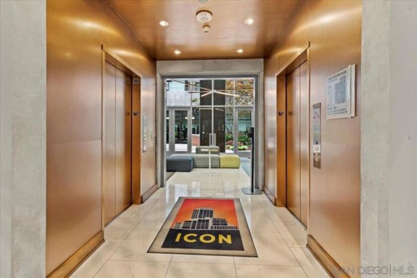Welcome to ICON, where refined urban living meets iconic San Diego views. Perched on the 10th floor, this beautifully appointed residence is bathed in natural light while enjoying a desirable, quiet courtyard orientation with views stretching toward the Coronado Bridge and the Pacific beyond. Luxury vinyl plank flooring enhances the open-concept living space, seamlessly connecting to a generously sized private patio—perfect for morning coffee or evening city lights. The designer kitchen showcases modern fixtures, stylish finishes, and a timeless neutral palette, complementing the well-designed floor plan. Offered furnished, this residence presents an exceptional opportunity as a primary home, executive retreat, or weekend escape in the heart of downtown. Residents of ICON enjoy premier amenities including the rooftop Skybox Lounge with panoramic views, BBQ terrace, fitness center, clubhouse, movie room, and 24-hour front desk security—all just steps from Petco Park, vibrant dining, and the best of the Gaslamp Quarter.