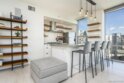 Experience elevated downtown living in this highly customized 2-bedroom, 2-bath residence at ICON, a premier concrete and steel high-rise in the heart of East Village. Sweeping northwest-to-southwest views stretch beyond the skyline to include the San Diego Central Library, distant mountain ranges, and glimpses of the bay. Floor-to-ceiling tinted windows frame the scenery while enhancing privacy and comfort throughout the home. Extensive custom upgrades set this residence apart, including a built-in Sonos sound system discreetly integrated within the walls for a clean, immersive experience. The primary suite is a true retreat, featuring automated blinds and a spa-inspired bath. A stackable washer and dryer are conveniently located in the in-unit closet, and nearly every detail has been thoughtfully customized for modern urban living. ICON delivers a secure, full-service lifestyle with controlled-access lobbies, underground parking, 24-hour on-site property management and staff, and residential trash chutes on every floor. The home includes secure two-car tandem garage parking. Residents enjoy a 1,700-square-foot fitness center with WiFi, a community theater room with raised seating and a 135-inch HD screen, and the 5th Inning Community Lounge with a full kitchen, TV, WiFi, and comfortable seating ideal for larger gatherings. The rooftop Skybox and viewing terrace, located across the street from Petco Park, offer unobstructed ballpark views with BBQs, surround sound, space heaters, and WiFi—perfect for enjoying games, concerts, and city events year-round!
