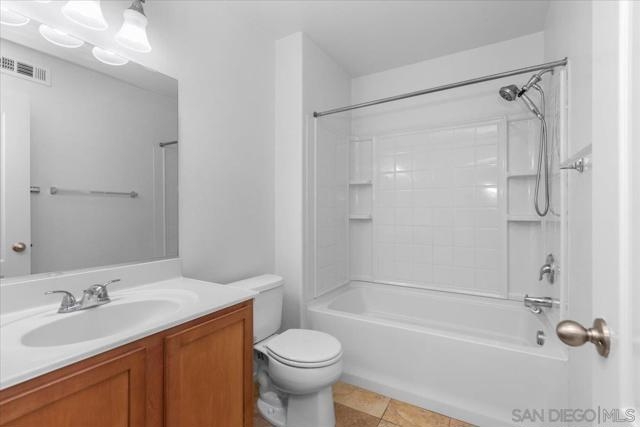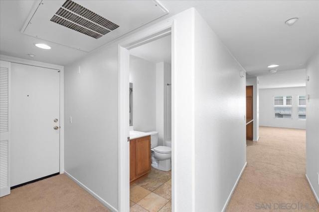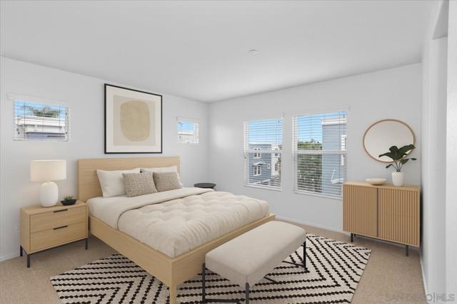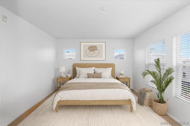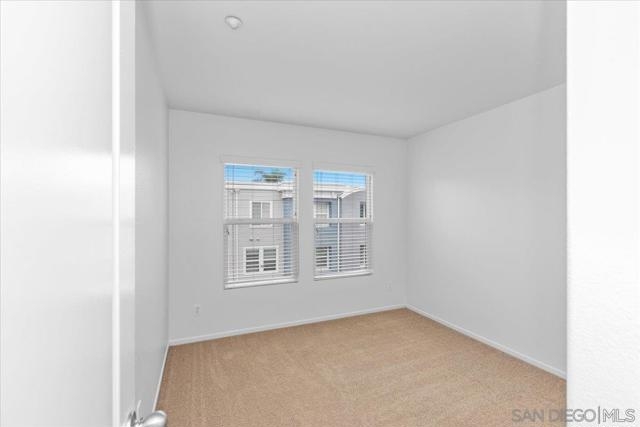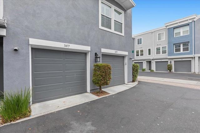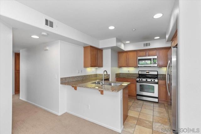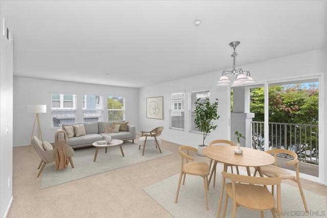 Rarely available! This 3 BR/2 BA, end-unit penthouse is located on the top floor and is truly move-in ready. Featuring a gorgeous kitchen with granite countertops, stainless steel appliances along with an open floor plan. Enjoy a gorgeous outside patio/deck with nice views. This home is freshly painted and has abundant natural light, a newer full-size washer and dryer, and a spacious two-car attached garage with direct access. The well-maintained complex offers a gated entry, sparkling community pool, and a play area for kids—all with a low monthly HOA. Walk to shopping and close to Sea World and beaches. Please note some of the photos are virtually staged with AI to inspire different furniture layouts and design possibilities.