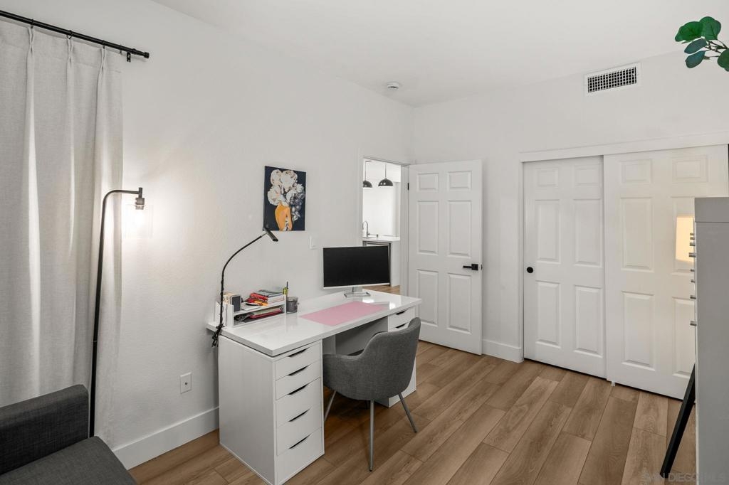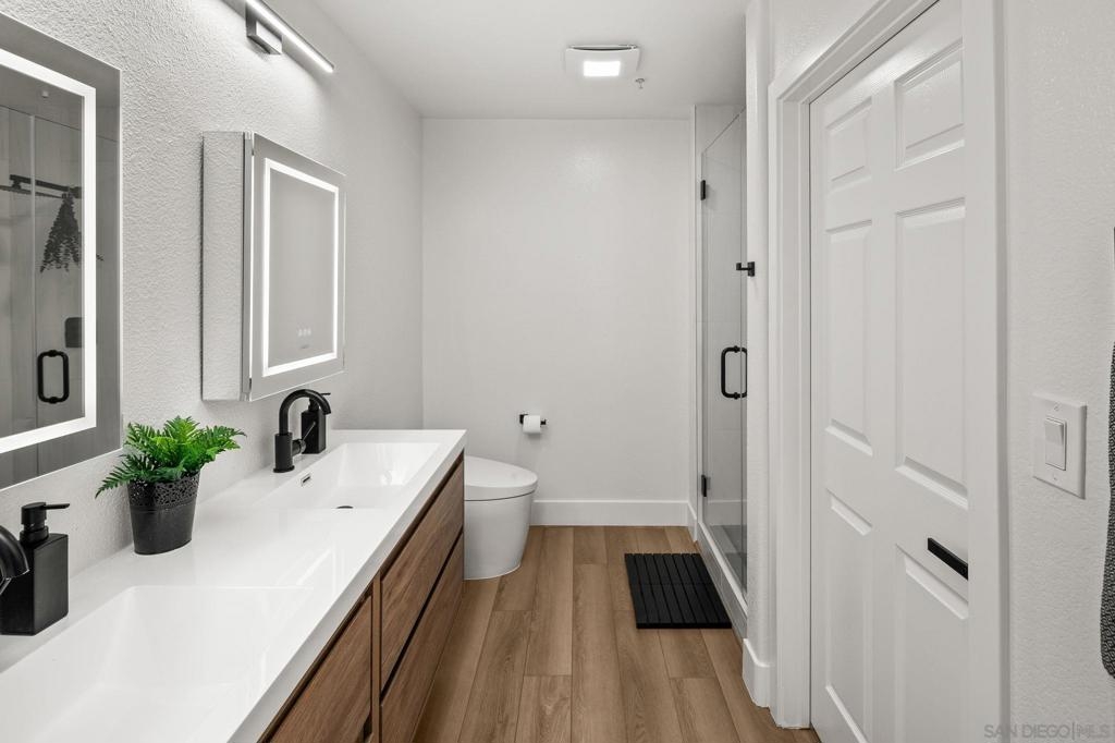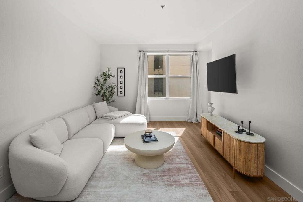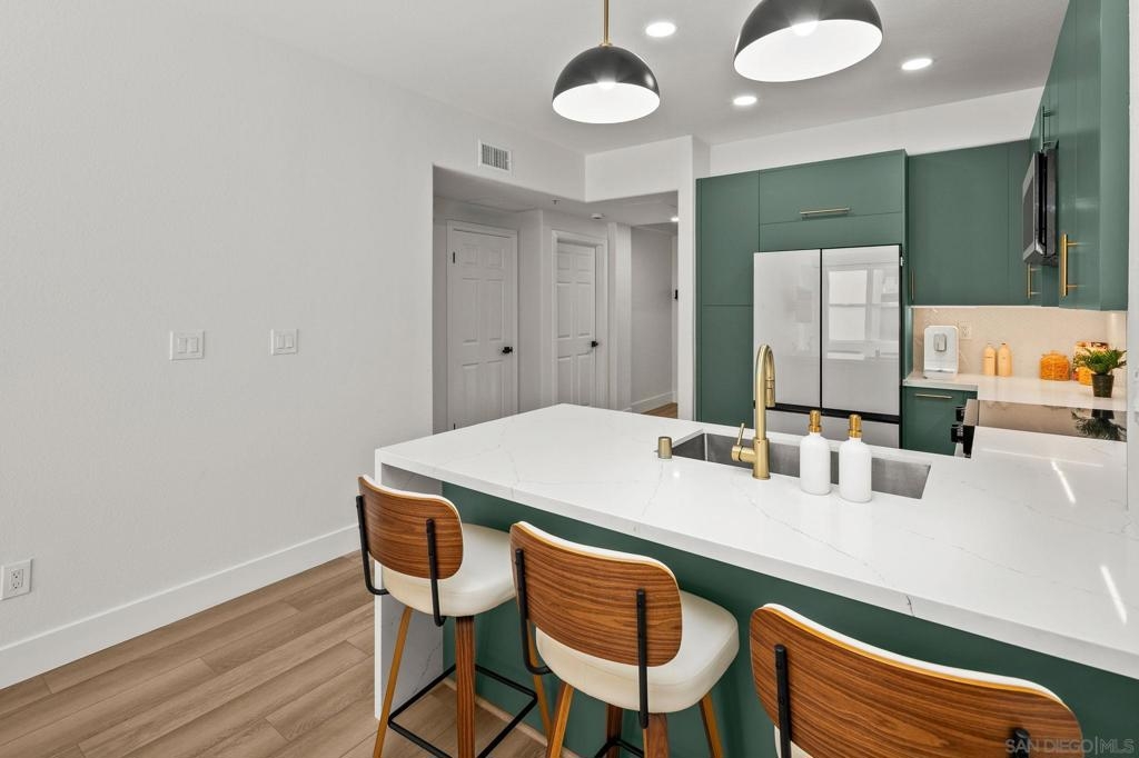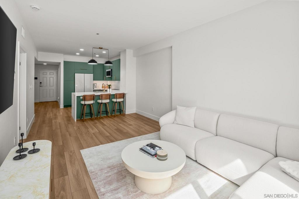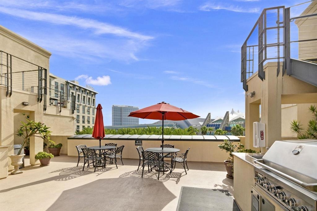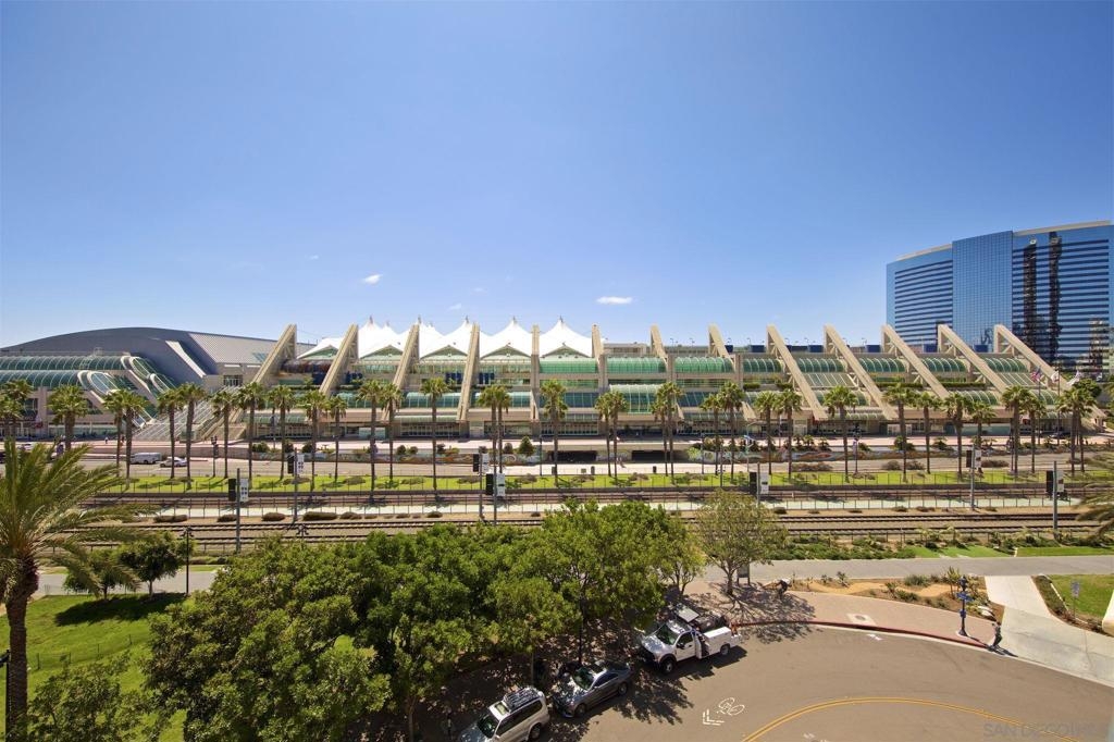 Welcome to luxury urban living in San Diego’s prestigious Marina District, directly across from the Convention Center. This newly remodeled 2-bedroom, 2-bath residence offers a bright, open floor plan. The stunning kitchen features new cabinetry, quartz countertops, and Samsung Bespoke appliances. The spacious primary suite includes a beautifully remodeled bathroom, with gorgeous tiled shower and generous walk-in closet. Enjoy indoor-outdoor living on your private balcony overlooking the Convention Center, complete with additional storage closet. Highlights include central heating and air conditioning, in-unit washer and dryer, and two exclusive gated parking spaces. The secure building offers electronic access, two elevators, and convenient trash chute. Residents enjoy premium amenities including a fitness center, game and community room, rooftop lounge with BBQ area, and inviting spaces for relaxation and entertaining. HOA dues include water, sewer, trash, common area maintenance, and high-speed Google Fiber internet, creating a truly turnkey downtown lifestyle opportunity. This is not one to miss!
