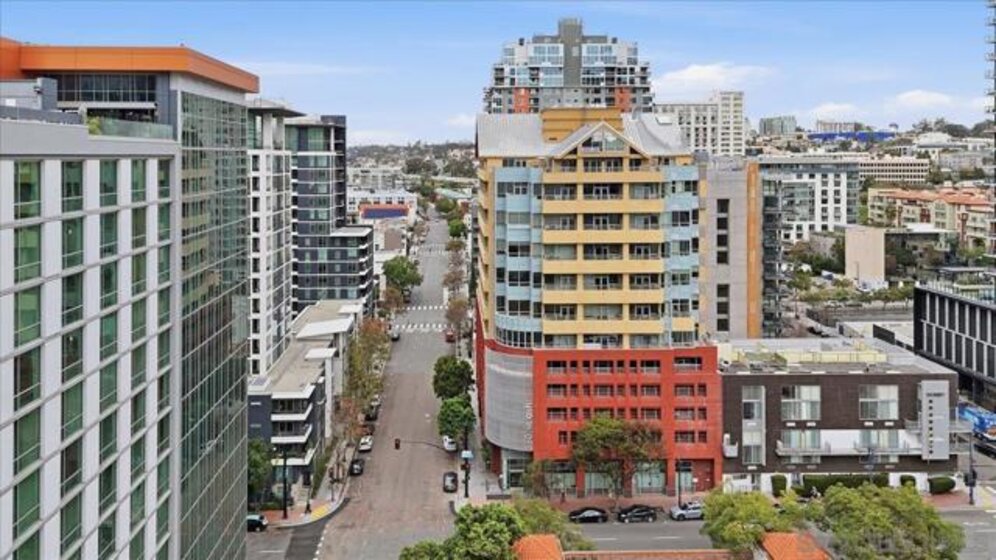 Live in the heart of Little Italy, one of San Diego’s most sought-after and fastest-growing neighborhoods. This spacious 697 sq ft studio that lives like a one-bedroom offers a functional open layout, abundant natural light, and beautiful city views from a private balcony. The thoughtfully designed floor plan features a flexible sleeping area, bright living and dining space surrounded by expansive windows, and a modern kitchen with stainless steel appliances and ample cabinetry. Enjoy unbeatable walkability just steps from the marina, the Embarcadero, and vibrant India Street, known for its renowned restaurants, cafés, and nightlife. Prime location directly across from Fit Athletic Club featuring resort-style amenities including a pool. Quick and convenient access to major freeways makes commuting effortless. Residents enjoy a well-maintained community with a recreation room, community center, and private storage space. The HOA is 106% funded, providing exceptional financial strength and long-term stability. Located in a secure community in one of San Diego’s hottest urban neighborhoods, this home offers the perfect blend of lifestyle, convenience, and investment potential. A rare opportunity to own prime real estate in the center of Little Italy with incredible walkability, modern comfort, and vibrant city living.