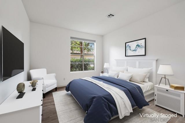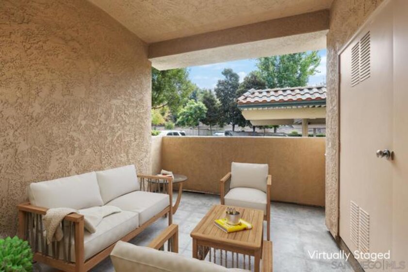 Located in the heart of Carmel Valley just minutes from the beaches of Del Mar, this ground-floor corner unit in Camino Villas offers the perfect blend of comfort, privacy, and convenience. Positioned on the southeasterly corner, the home is filled with natural light and features an expansive private patio perfect for morning coffee, evening relaxation, or entertaining outdoors. The bright and open floor plan includes a spacious living area and a primary bedroom with dual closets. A covered parking space is conveniently located just steps away for easy access. Camino Villas residents enjoy resort-style amenities including a pool, spa, gym, sauna, tennis courts, and ample guest parking — all surrounded by beautifully maintained grounds. Some of the photos in this listing include virtual staging.