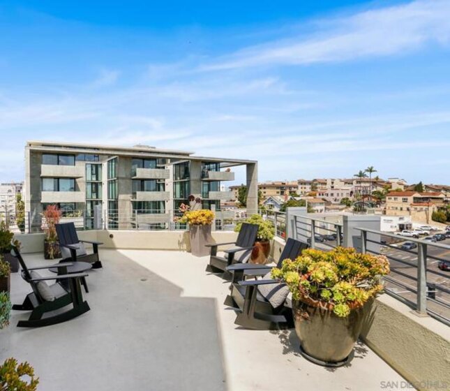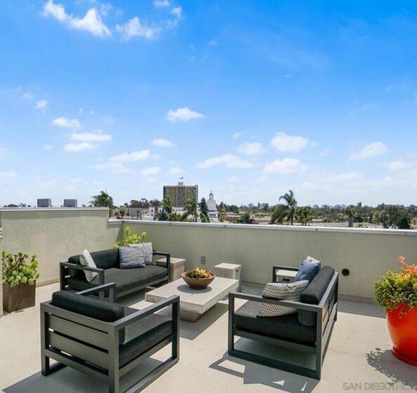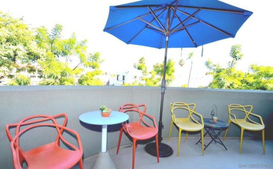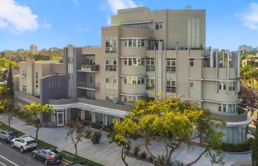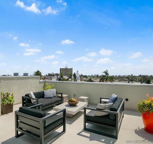Rare corner residence at DECA with 500+ sqft of private outdoor space. This modern Hillcrest condo blends dramatic curved window walls, soaring concrete ceilings, and refined upgrades with a lifestyle second to none. Entertain or relax on your expansive wraparound terrace—perfect for dining under the stars, gardening, or hosting friends. Inside, a chef’s kitchen with Sub-Zero, Wolf, and Miele appliances flows seamlessly into the open living area bathed in natural light. The primary suite features a spa-inspired bath, while the community offers secure entry, fitness center, rooftop decks, and garage parking with EV charger. Steps to Balboa Park, weekly farmers’ market, and Uptown dining/nightlife, this boutique 37-unit building delivers rare outdoor living in the heart of it all. Step into a one-of-a-kind corner residence at DECA where dramatic walls of glass and soaring concrete ceilings set the stage for unforgettable living. This modern retreat blends sleek architectural lines with warm, livable design — but it’s the massive wraparound terrace that steals the show. Over 500 square feet of outdoor living gives you room to dine under the stars, host sunset gatherings, or create your own private urban garden. Inside, refined upgrades include a Sub-Zero refrigerator, Wolf induction cooktop, Miele dishwasher, and custom finishes that bring style and function together seamlessly. The open layout flows effortlessly from the chef’s kitchen to the spacious living area, all bathed in natural light from sweeping window lines. A luxe primary suite and spa-inspired bath add everyday indulgence. Located in the heart of Hillcrest, you’re just steps from Balboa Park, the weekly farmers’ market, cafes, and nightlife — everything Uptown living is known for. DECA’s boutique 37-unit community offers peace of mind with secure entry, parking with EV charger, fitness center, and rooftop terraces with panoramic views. This is the only residence of its kind in the building — a rare opportunity for buyers who want outdoor space, walkability, and modern architecture all in one. Don’t miss your chance to claim this terrace lifestyle in Hillcrest.