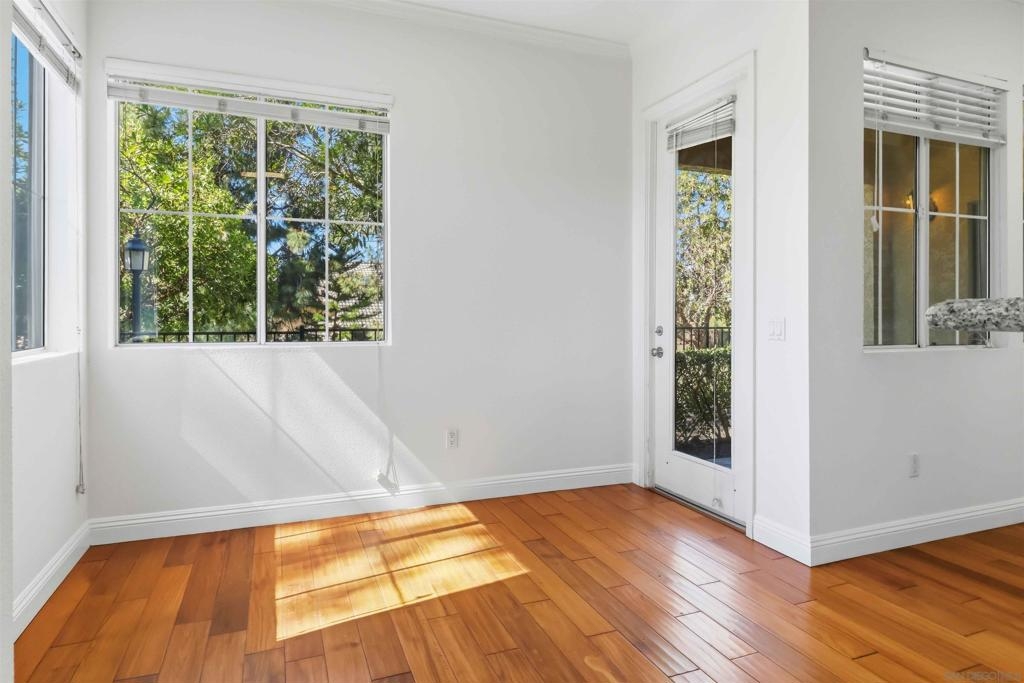 Unbeatable value in the Heart of Carmel Valley! Spanning a spacious 1,193 sq. ft., this ground-floor residence offers one of the most competitive price-per-square-foot opportunities in all of 92130. As a premium corner unit, this home provides a rare level of privacy and tranquility with no neighbors or buildings to the west. Its southwest-facing orientation ensures the open-concept living area is bathed in natural light throughout the day. The highly desirable split layout features dual primary suites, offering maximum privacy for roommates, guests, or a home office setup. The residence includes a private one-car garage located immediately adjacent to the unit entrance - a highly convenient and rare feature. Experience a world-class lifestyle with an unbeatable location: steps from top-rated schools and the luxury amenities at One Paseo and Del Mar Highlands Town Center. Enjoy a quick 5-minute drive to the beaches of Del Mar. Plus, No Mello-Roos and an HOA that covers water and trash. This is the opportunity you’ve been waiting for.