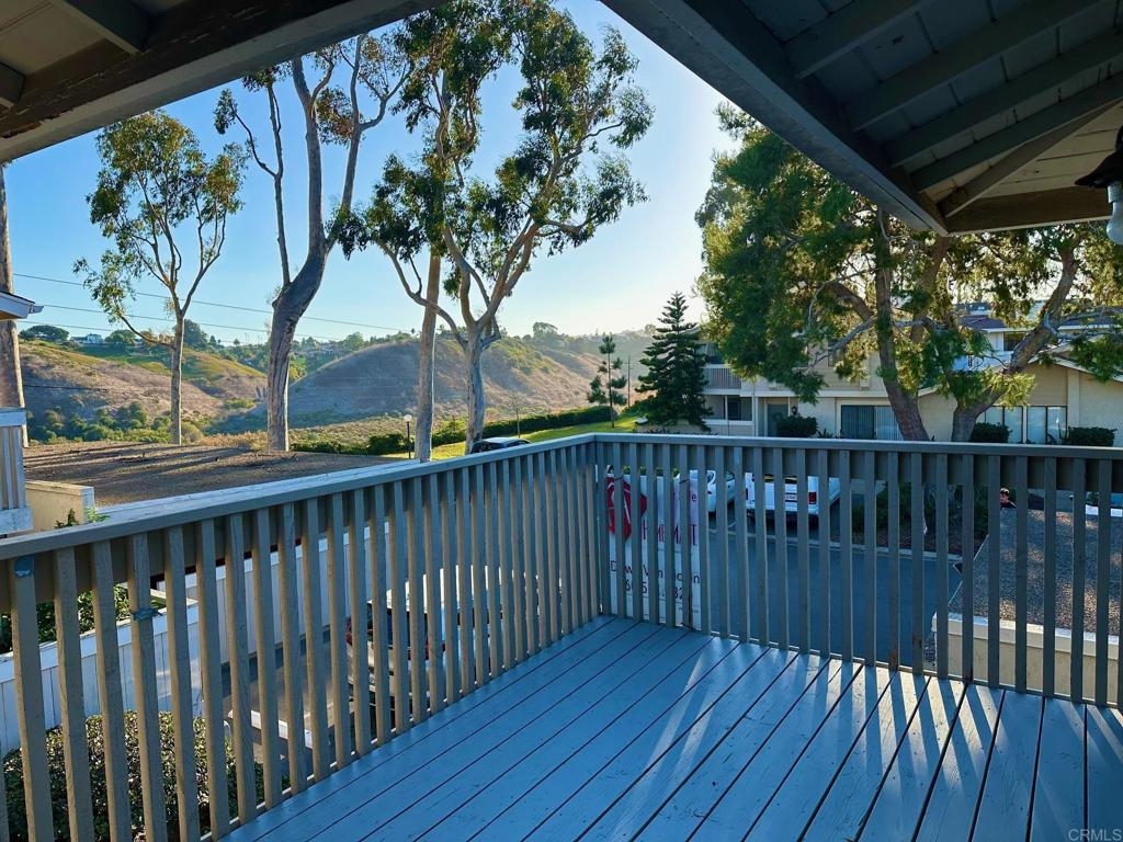 Beautiful End Unit in highly desirable Playmor Terrace West Community. Perfect Investment Opportunity-student can live in 1 room and rent out other 2. Featuring Newly Painted walls/baseboards/cabinets & balcony deck. New ceiling lights and carpeting. Feels like a Detached Home with no one above nor below you. Expansive great room and cozy gas fireplace are adjacent to french doors which open up to your own private patio area. Laundry room and guest bathroom are conveniently next to kitchen. All 3 bedrooms are upstairs. Master bedroom has en suite bathroom. 2 bedrooms share the dynamic upstairs balcony with stunning views of Rose Canyon. Enjoy the community pools/spa. 1 carport & 1 uncovered space for parking. Relish the lifestyle of living by La Jolla Beaches, UTC mall, UCSD Campus, trolley, delicious restaurants, shopping & close freeway access.